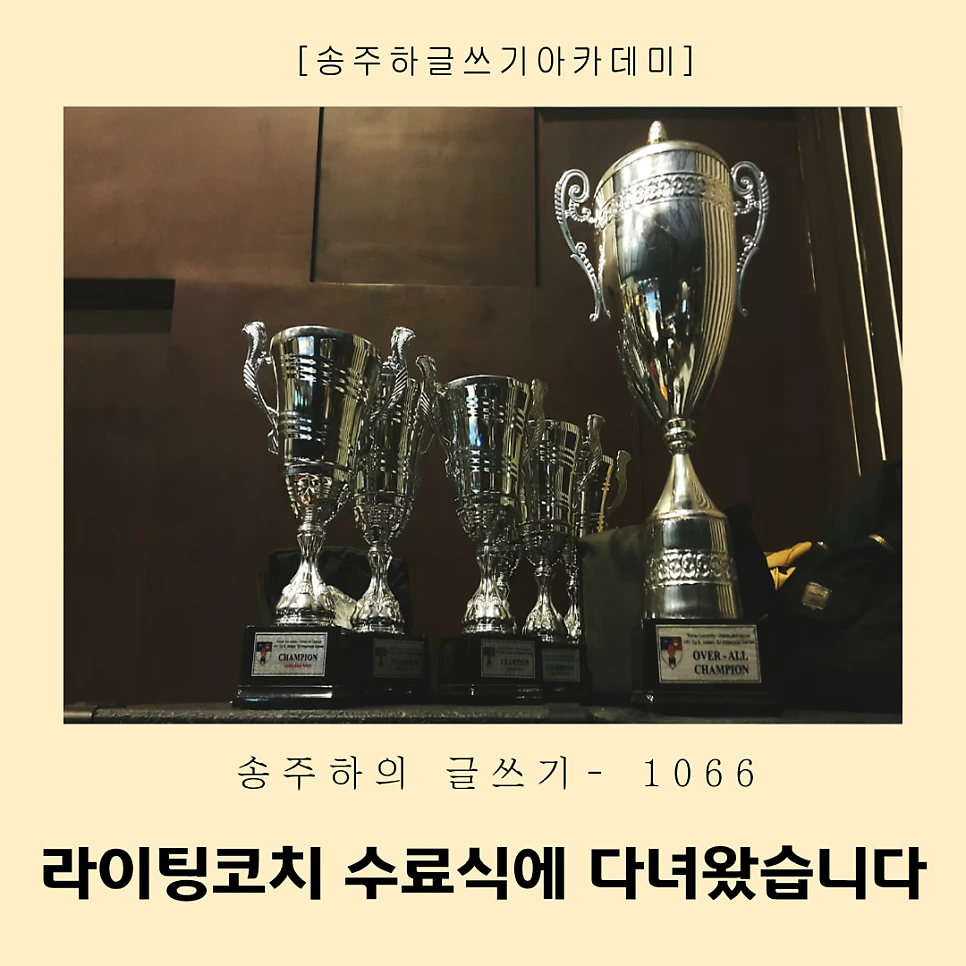 제가 몸담고 있는 [자이언트 북 컨설팅]의 라이팅 코치 수료식이 있었습니다. 대구에 있는 한 홀에서 열렸는데요. 오래간만에 하는 오프라인 행사라서 반가운 마음으로 출발했습니다.