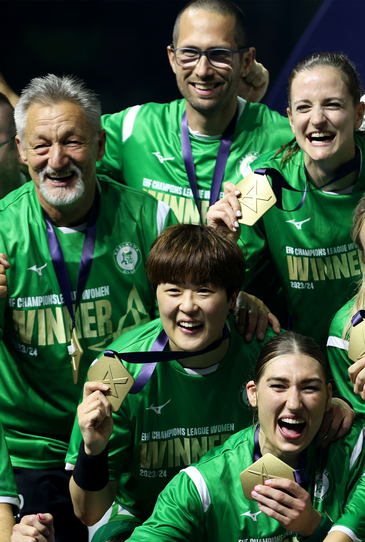류은희가 유럽 챔피언스리그에서 한국 선수 최초로 우승 트로피를 높이 들어 올렸다.