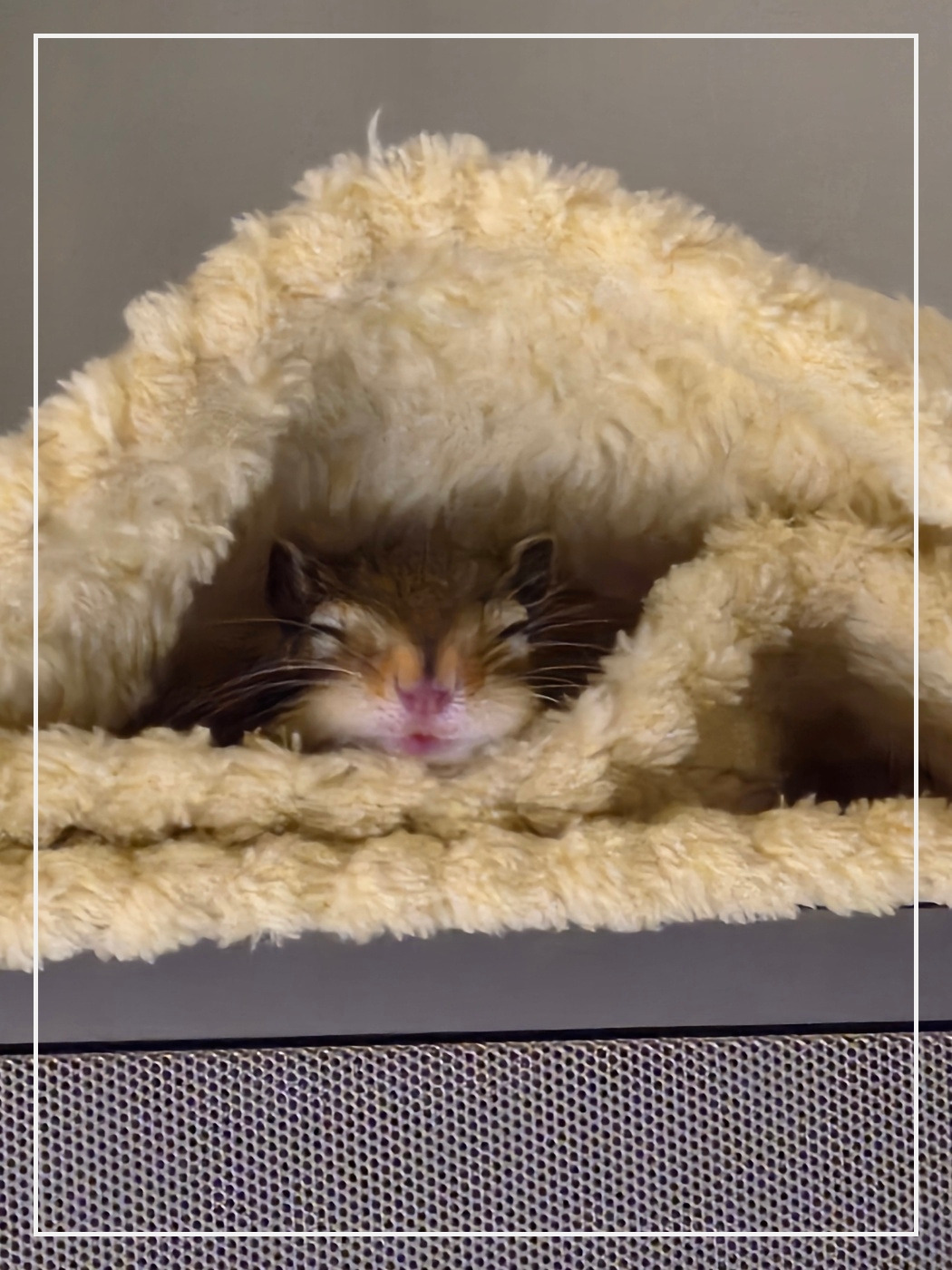 코링이는 사람이 없을 때나 극도로 예민한 시기가 아니고서는 케이지에 가두지 않고 그냥 방과 거실을 자유롭게 돌아다니며 지냈다. 온 집안이 자기 영역이었고, 여기저기 맘에 드는 곳에 올라가고 파고들고 간식을 숨겨두러 뛰어다녔다. 방바닥에 타다다닥 발소리를 내며 빠르게 여기저기 열심히도 돌아다녔다.