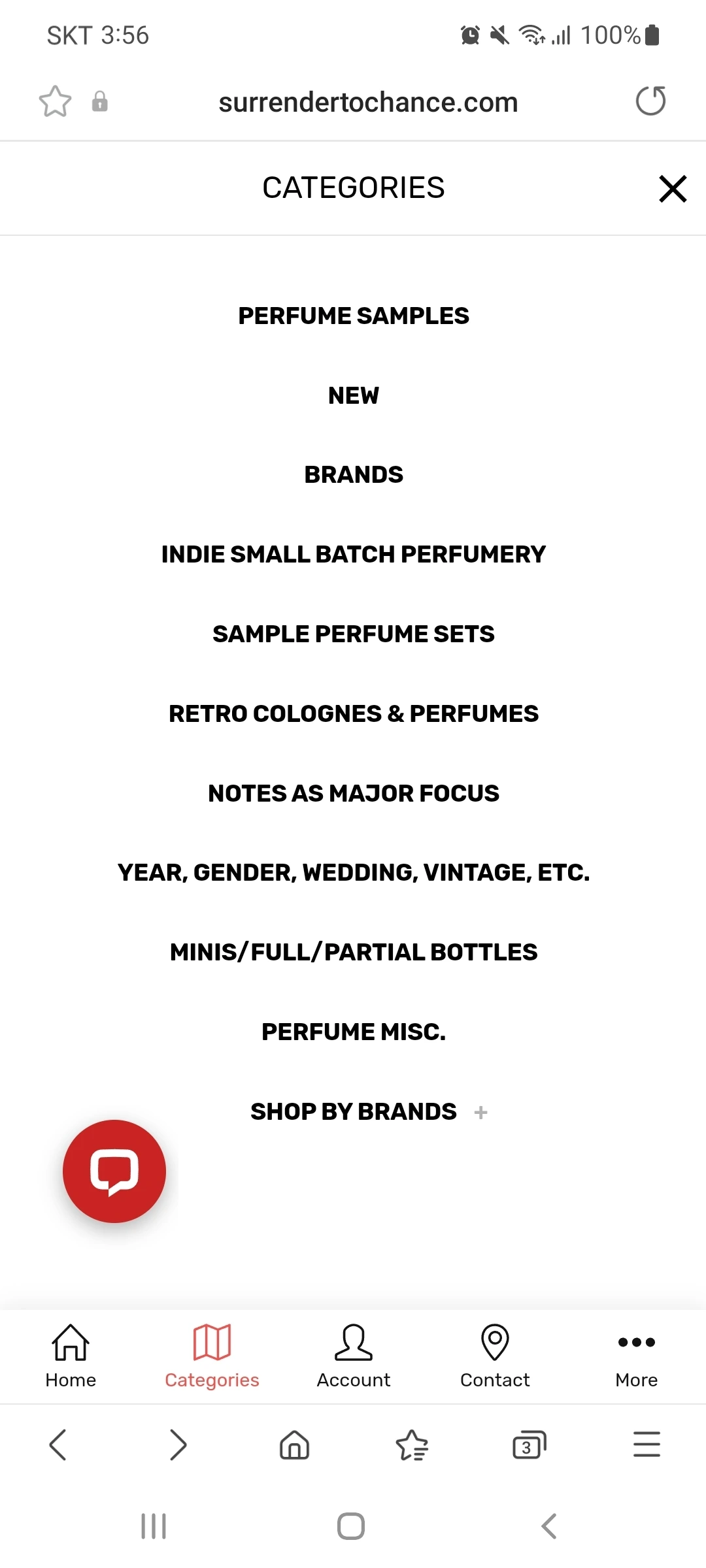 왼쪽: surrendertochance 메인 페이지 캡쳐 가운데: 카테고리란 오른쪽: 레트로 코롱&퍼퓸즈 란