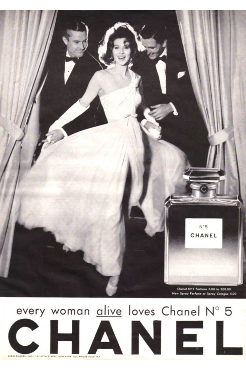 하지만 1940년대는 제 2차대전이 유럽에서 절정을 향해 다다르던 때였고, 전후 유럽은 굉장한 물자 부족에 시달렸으며, 샤넬 사 역시 내부적으로 코코 샤넬과 베르트하이머 형제간 갈등이 있던 때였다. 그래서 어쩌면 이 당시의 가격은 이례적인 상황이었기에 현재와 비교하기 조금 어려울 수도 있을 것 같다. 그래서 70년대 샤넬 No.5 광고를 찾았는데, 정확히 이 포스터가 언제인지도 불확실한 경우가 많았으며 광고 포스터에 향수 가격이 나와있지 않은 경우도 있었다. 다행히 이하 포스터를 찾을 수 있었다.