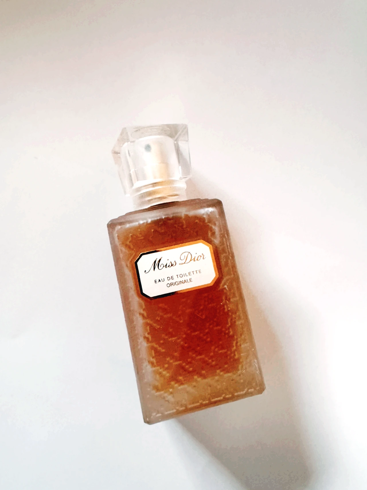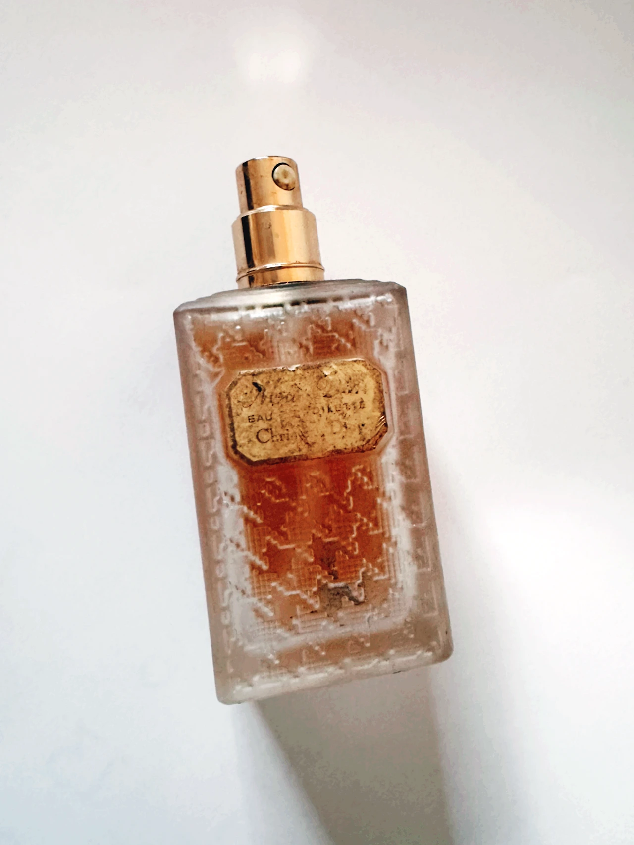 그 외에 또, 아마 80년대로 추정하는 미스 디올 오 드 뚜왈렛이 있다. 70년대일 수도 있는데, 혹시 몰라 보수적으로 80년대로 잡기로 했다. 시그니쳐로 가지고 다닐 때 주로 이걸 뿌렸다. 스프레이형이라 뿌리기도 쉽고, 비교적 싼 편이라 다 썼을 때 새로 구하기도 쉽기 때문이었다.