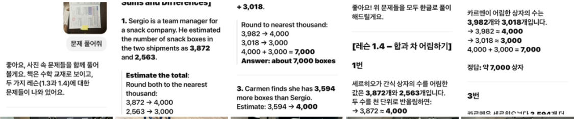 주로 사진을 많이 활용한다. 간단하다. 스마트폰에서 ChatGPT를 열고 프롬프트 창에 사진을 올린 다음, 사진 밑에 간단한 명령어를 넣으면 된다. AI는 사진에 대한 해독 능력이 탁월하다. 언어에 대한 장벽도 없다. 수학 문제일 경우 “문제 풀어줘”, 영어, 독일어, 스페인어, 중국어 등등 외국어로 답하면 “한글로”, 심지어는 반발 투면 “존댓말로”, 이런 명령어면 된다.