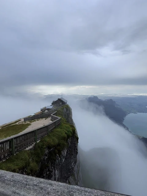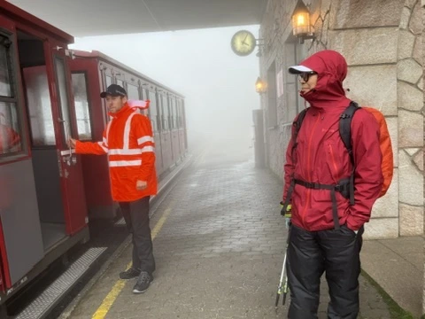 일어나자마자 창밖을 보니 안개가 자욱이 껴있었다. 바깥은 여름이라 믿기 어렵게 춥고 바람도 세게 불고 있었다. 용감히 밖으로 나갔다. 샤프버그반으로는 한 줌의 사람들이 내렸다. 하지만 모두들 추위와 바람에 대해 준비를 하지 않은 탓인지, 바로 다음 기차로 내려갔다. 덕분에 하루 종일 샤프버그 정상 전체를 우리가 차지할 수 있었다. 우리는 가능한 한 정상을 여기저기 걸어보기로 하였다.