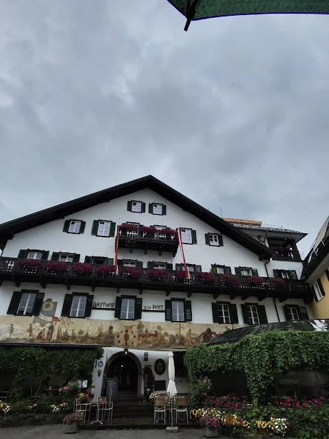 그래서 바로 상트길겐으로 내려가기로 했다. 내리막길은 경사도 심하고, 또 비가 온 후라 미끄럽기도 했다. 힘들게 내려와 마을 안으로 들어가, 숙소인 가스토프 주르포스트 (Gasthof zur Post)가 눈에 보이는 순간, 몸이 탁 풀리며 다리가 후들거렸다. 거의 600 년 된 호텔 건물은 원래 우체국 건물이었다 한다. 많은 예술가들과 정치가들이 다녀간 곳이라고 쓰여있었다. 이 건물은 마을 한복판에 있고, 바로 건너편은 시청건물이다. 상트길겐은 모차르트의 어머니의 고향이고, 그 누이가 살았었고, 그 건물은 모차르트하우스 (Mozarthaus)로 불리는 박물관으로 유지되고 있다.