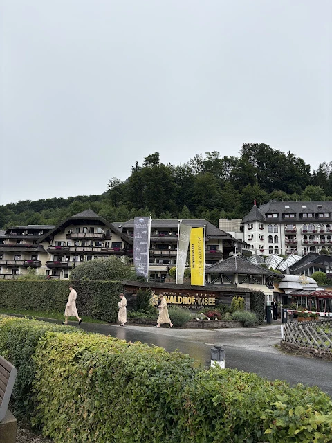 아침 먹고 다음 행선지인 상트길겐으로 보낼 짐들을 호텔 로비에 내어놓고, 간단한 차림으로 출발했다. 비가 부슬부슬 내리기 시작했다. 푸실성을 뒤로하고, 푸실 호수 남쪽을 따라 6 킬로미터쯤 걸어, 자그마한 마을인 푸실암시 (Fuschl am See)에 도착했다.