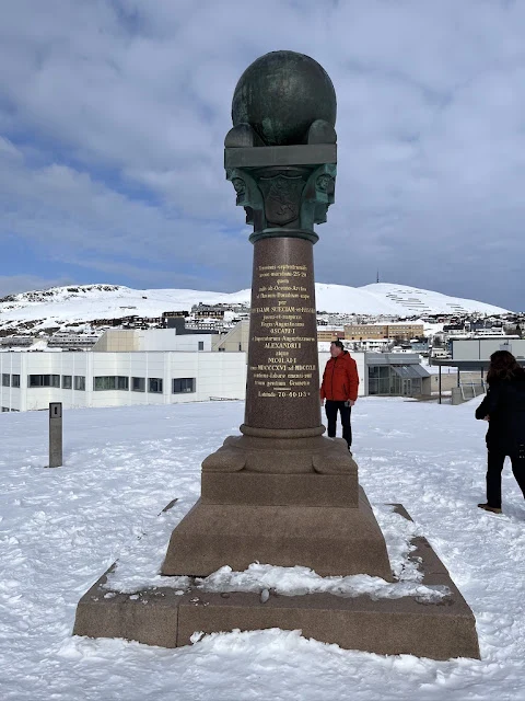 하메르페스트에서는 약 한 시간 반 정도의 시간이 주어졌다. 이곳에서 가장 유명한 것은, 독일-러시아의 천체학자 이자 지구 측정학자인 프리드리히 게오르그 빌헬름 폰 스트루베 (Friedrich Georg Wilhelm von Struve)가, 1816 년부터 1855 년 까지, 정확한 지구의 모양과 크기를 재기 위해, 흑해부터 시작해 발틱해를 거쳐 북대서양 까지, 삼각형을 연결하여 경도 30도의 길이를 잰 것을 기리는 기념비일 것이다. 이는 유네스코 자산으로 등재되어 있다. 거의 40 년에 걸쳐 벌린 일이라니 다시 한번 오늘의 우리 지식에 기여한 학자들에게 경의를 표하게 되었다. 항구에서부터 한 30 분 정도 걸어 스트루베 기념비에 도착했다.