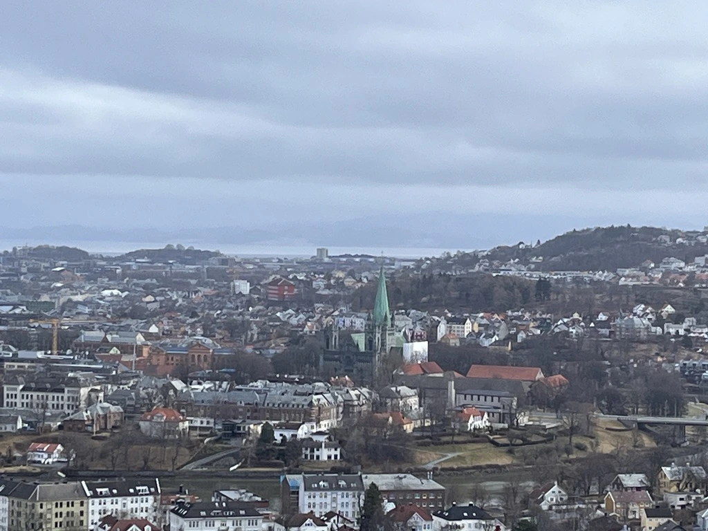 트론다임은 노르웨이에서 세 번째로 인구가 많은 도시라 한다. 아침에 배에서 내려 버스에 올라 마을을 구경했다. 어느 방향에서 보아도 눈에 띄는 11 세기 초 바이킹 왕 올라프가 세운 니다로스 (Nidaros) 교회를 먼저 방문했다. 왕은 죽은 후에 성자가 되어 성올라프라 불린다. 니델바 (Nidelva) 강변을 따라서 쭉 늘어선 집들이 깨끗하고 조용한 동네를 보여 주었다.
