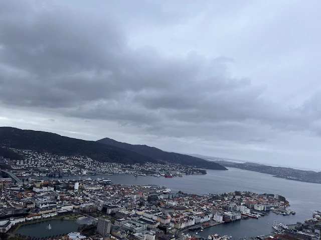 버겐은 노르웨이에서 수도 오슬로 다음으로 큰 도시로, 11 세기부터 무역항으로 자리매김을 하여, 19 세기 까지는 수도였다고 한다. 피요르드인 관계로 깊은 수심을 유지하면서도 섬들로 둘러 싸여 있어, 북대서양의 거센 폭풍으로부터 보호되는 천혜의 항구라 한다. 특히 중세 이후로는 우리 황태처럼 말렸거나 (스톡퓌시) 아니면 말리면서 소금에 절인 (바칼라) 대구 (cod)의 집하장으로 유명해 유럽 전역으로 보냈다 한다.