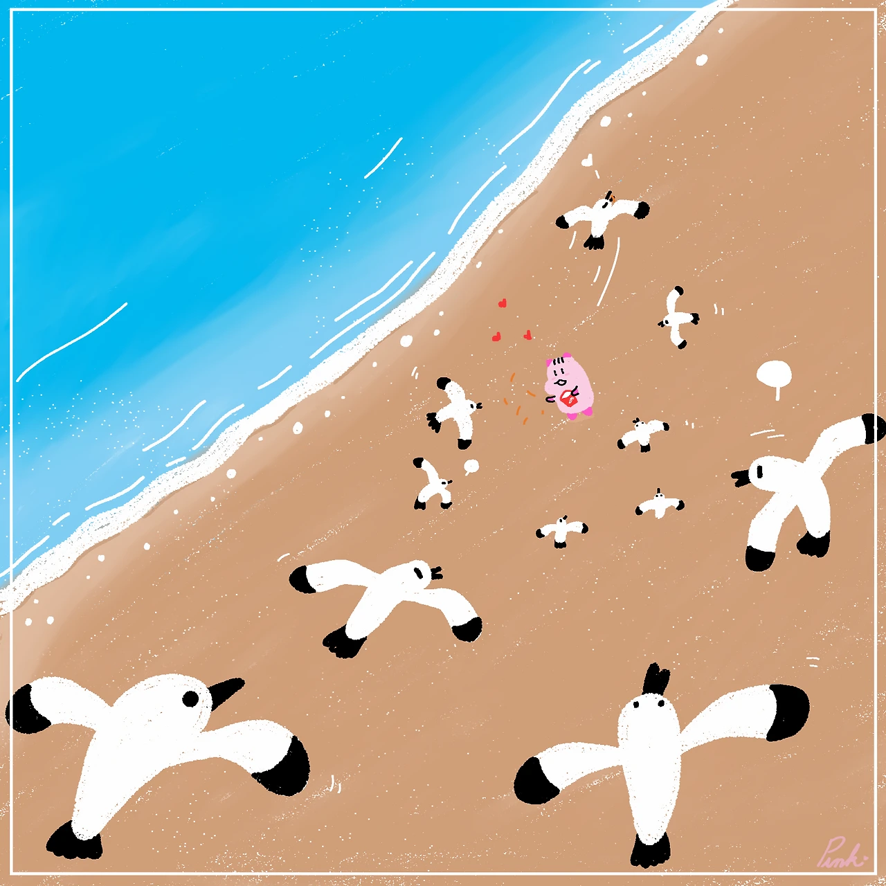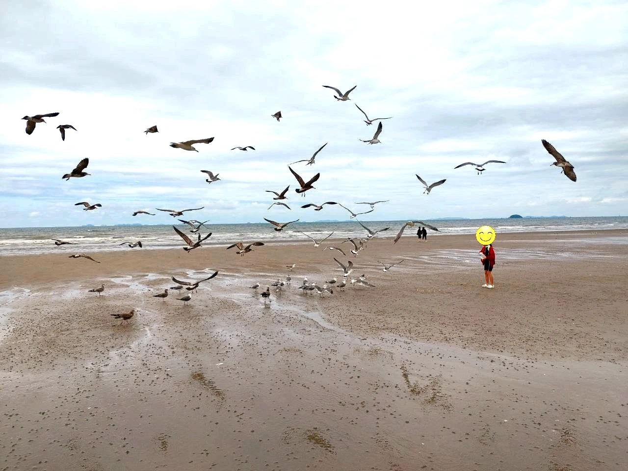 해변의 갈매기들에게 나누어 주었습니다