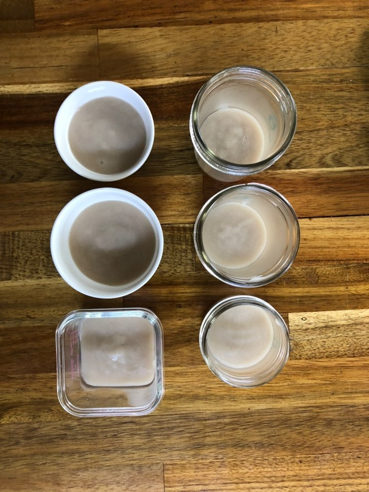 그 이유식 준비물을 지금 둘째가 이어받아 사용하고 있다. 처음엔 첫째처럼 시판을 사 먹일 생각이었는데, 초기 이유식만 만들어 줄까 싶어 쌀미음을 만들었다. 오늘부터 이유식이다! 마라톤에 나가는 선수와 같은 결심을 한 것 같은데, 결심이 우스울 만큼 이유식은 손쉽게 완성됐다. 물에 쌀가루를 타서 끓이고 채에 받히기만 하면 완성이었다.