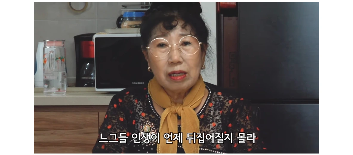 "나는 내 인생이 71살에 뒤집어졌잖아. 내 인생이 이러고 뒤집어질 줄 알았으며는, 내가 허고 싶은 거 다 하고 살았을 텐데. 그거를 몰른 거야.. 느그들 인생이 언제 뒤집어질지 몰라." - 박막례 할머니 -