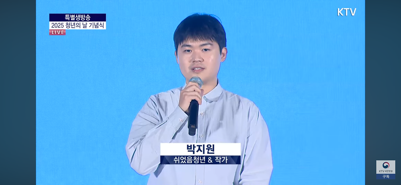 ‘2025 청년의 날 기념식’ 행사 관계자로부터, 청년 발언대에 나를 초대하고 싶다는 제안 메일을 받았다. 내가 퇴사 후 느꼈던 무기력함과 감정의 변화를 솔직하게 기록한 이 책이 행사 취지와 맞아 나를 선정한 것이다. 쉬었음 청년이자 이 경험을 글로 남긴 작가로서 초대받는다는 사실이 낯설면서도 뿌듯했다.
