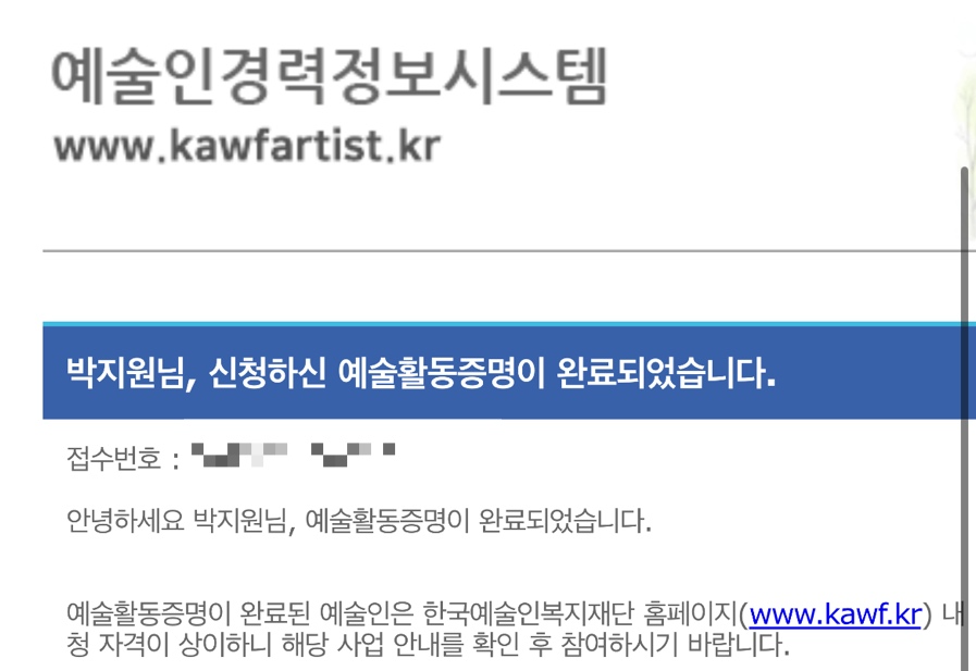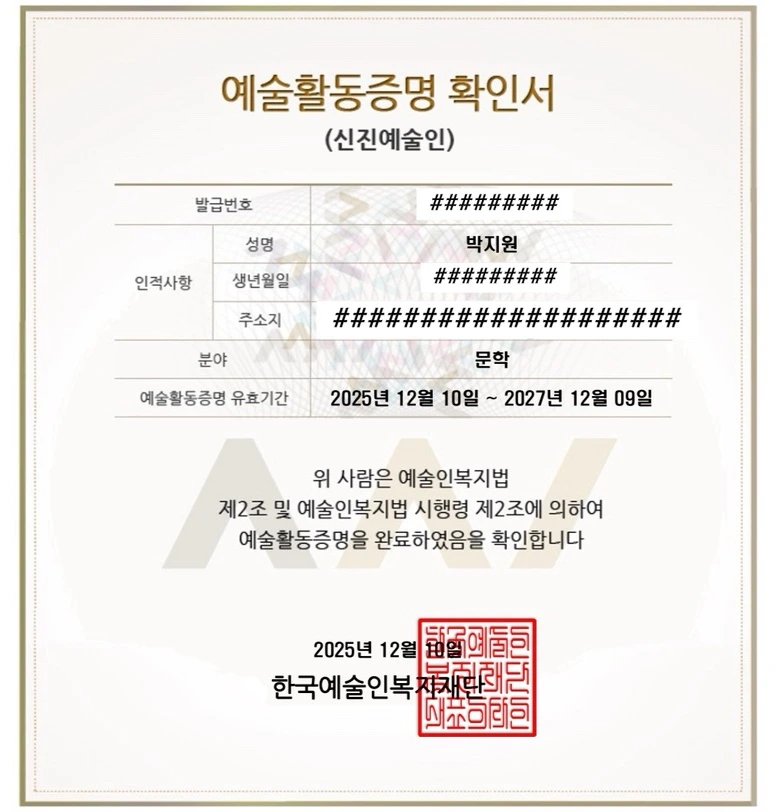 드디어 문학 분야 신진예술인으로 예술활동증명을 완료했다.