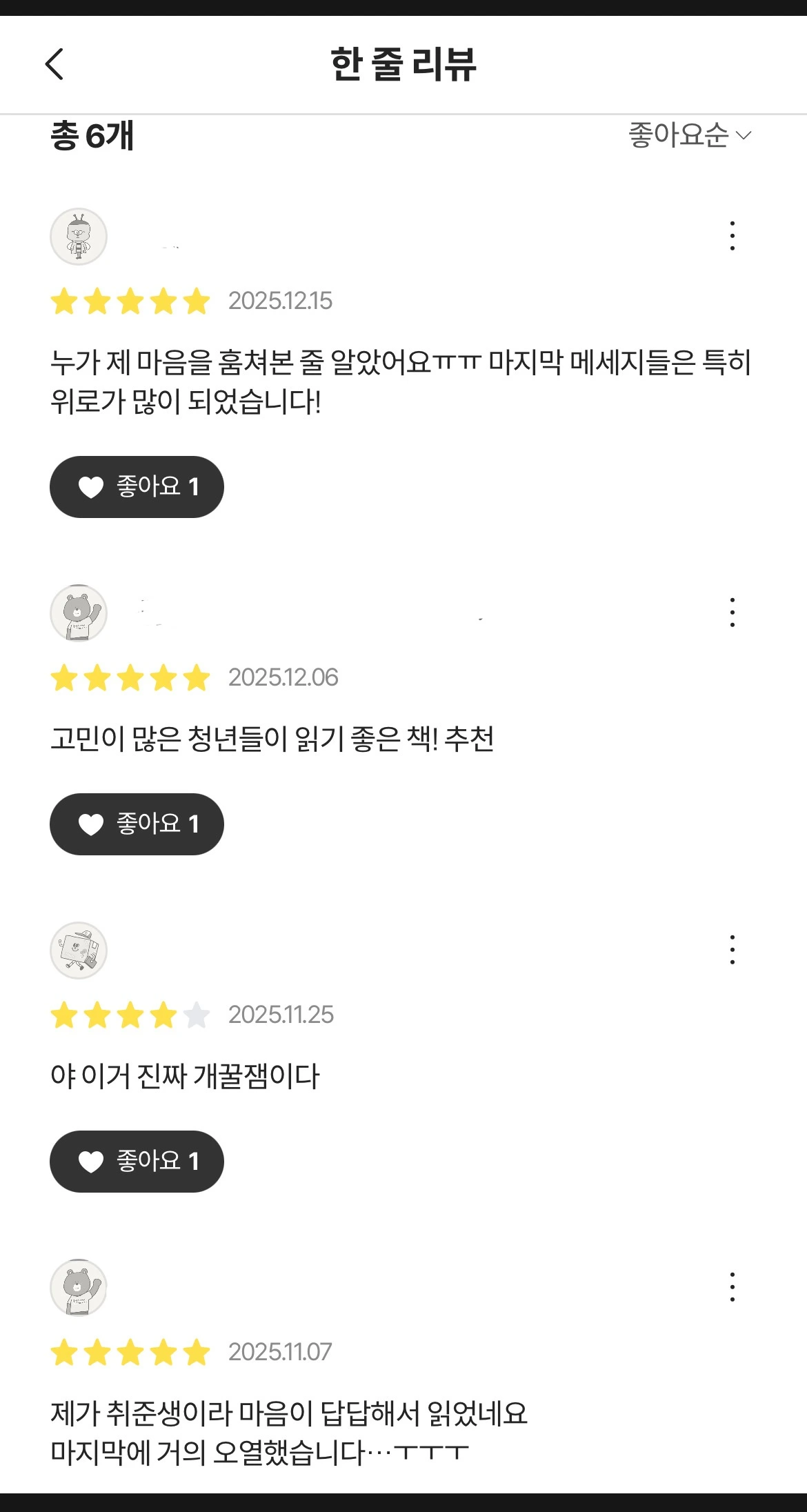 그럼에도 이 결과가 의미를 가질 수 있었던 건, 내 글을 읽고 공감해 준 독자들 덕분이라고 생각한다. 매번 좋은 리뷰가 달릴 때마다 뿌듯함과 감사함을 느낀다. 앞으로도 나 자신을 믿고, 독자들에게 더 보답할 수 있도록 꾸준히 글을 써나가고 싶다.