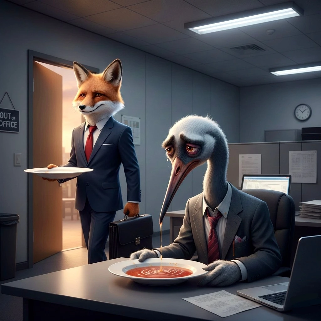 여우와 두루미 이야기를 떠올려봅시다. 그리고 여우와 두루미가 접시에 담긴 스프를 먹는 것을 회사 일이라고 쳐봅시다.