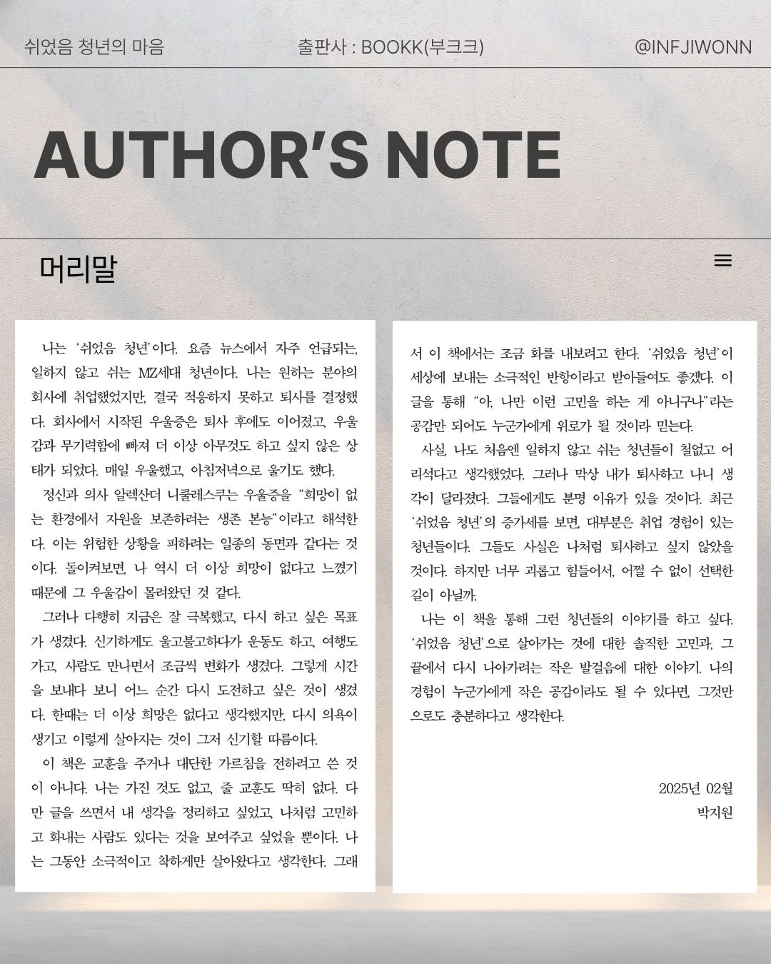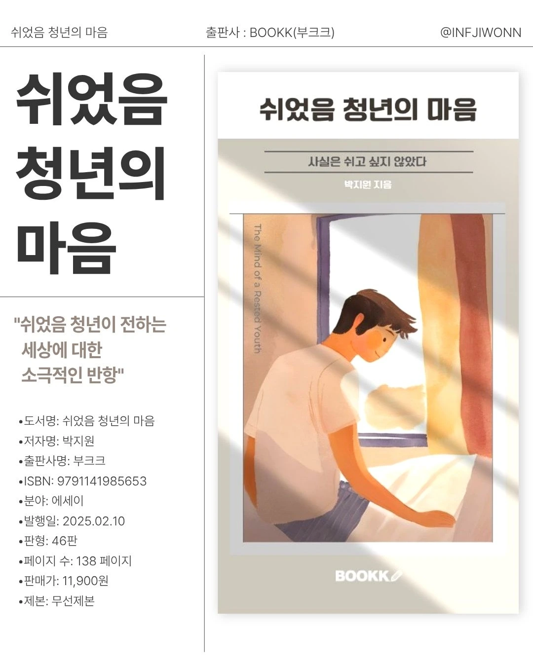 #독립출판 #부크크 #쉬었음청년의마음 #에세이 #밀리의서재 #독립책방 #독립서점 #입고문의환영