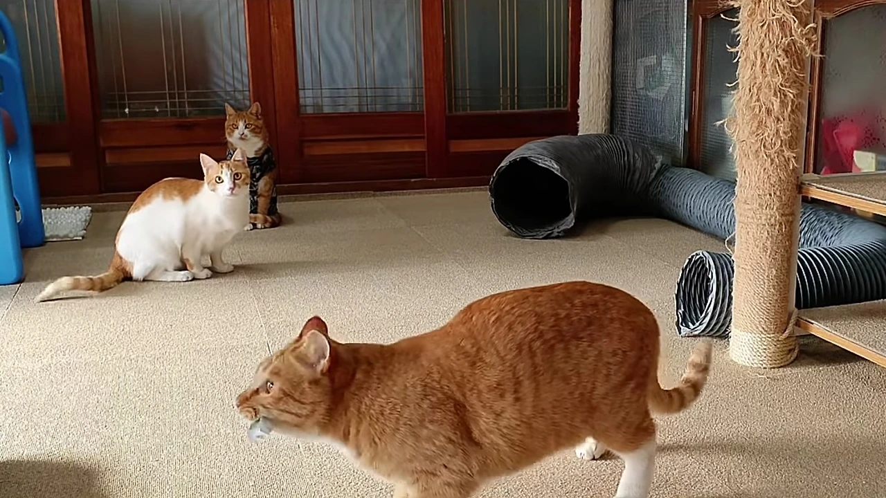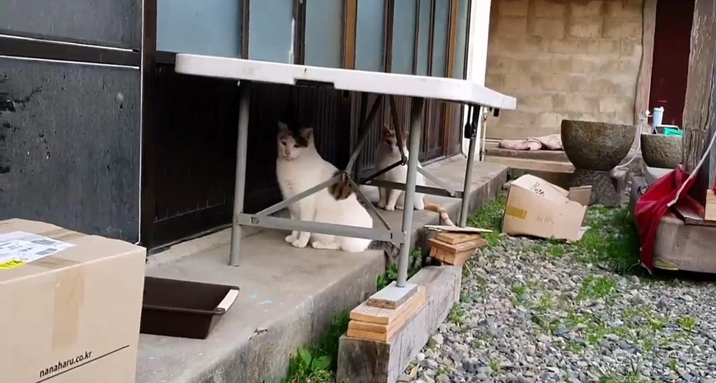 아저씨가 자꾸 그리 정신 사납게 구니 집안이 제대로 돌아갈 리가 있겠어요. 얼마 전엔 마당에 있는 커다란 캣타워가 와르르 무너졌어요. 다 아저씨가 부산스럽게 구니 게도 영향을 받아 그런 게지요.