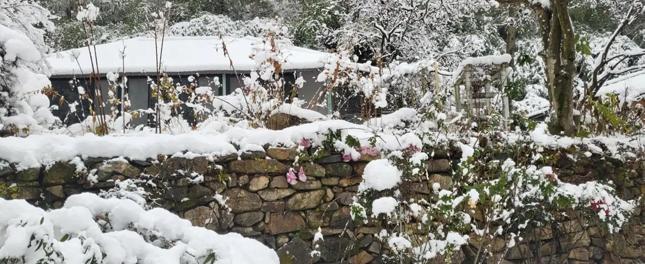 처음 방문한 우리를 보고 주인은 놀란 얼굴로 물었었다. "어, 아직 이런 델 찾아들 나이는 아니신 듯한데...". 윗집, 아랫집, 논 건너 맞은 편까지, 죄다 지긋한 연세에 자연을 벗하고 싶은 이들로 마을을 이룬 덕분에, 우리는 젊은 새내기로 비쳤던 것이다. 하지만 우리도 새로운 계절의 초입에 들어선 것은 부인할 수 없다. 단풍이 다 진 것도 아니려니와 겨울이라고 하기는 아직 이른데, 때아닌 폭설이 안긴 이 아침의 낯선 설렘은, 잎이 다 진다 한들 겨우내 헐벗은 가지로만 있으란 법은 없다는 사실을 일깨운다. 흰 소매가 주는 단순한 색조의 매력만큼이나, 계절이든 인생이든 이제는 화려한 경력이나 사연으로가 아니라 사유의 깊이를 더하는 시절로 삼아야 하지 않을까.