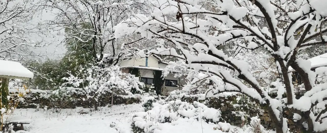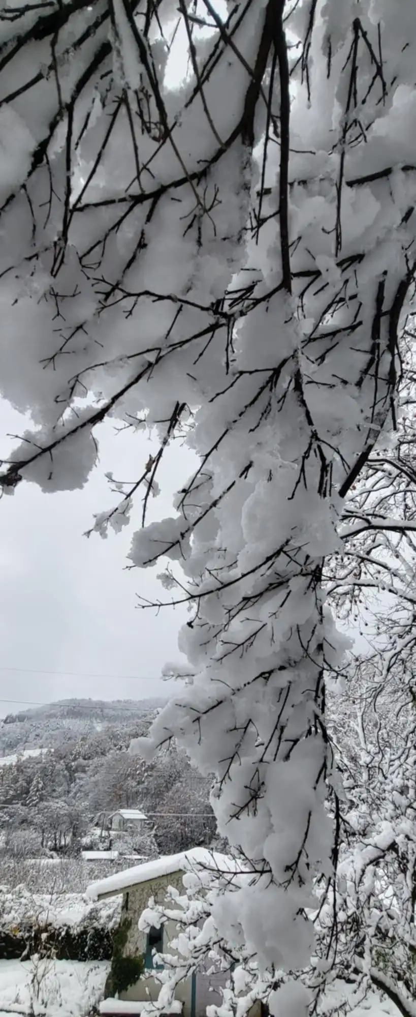 그런데 지난가을, 집 앞에 펼쳐진 논은 황금색으로, 그 뒤로 우거진 숲은 점점 울긋불긋해지더니, 때아닌 11월 중순, 지난밤 내린 폭설로는 천지가 흰색, 재색으로 거듭났다. 밤사이 눈 뭉치는 쉬지 않고 내려, 가지마다 저렇게 잎을 대신한 눈송이로 두툼하게 입었으니 그 소매가 지난 계절의 화려함보다 못하지 않다.