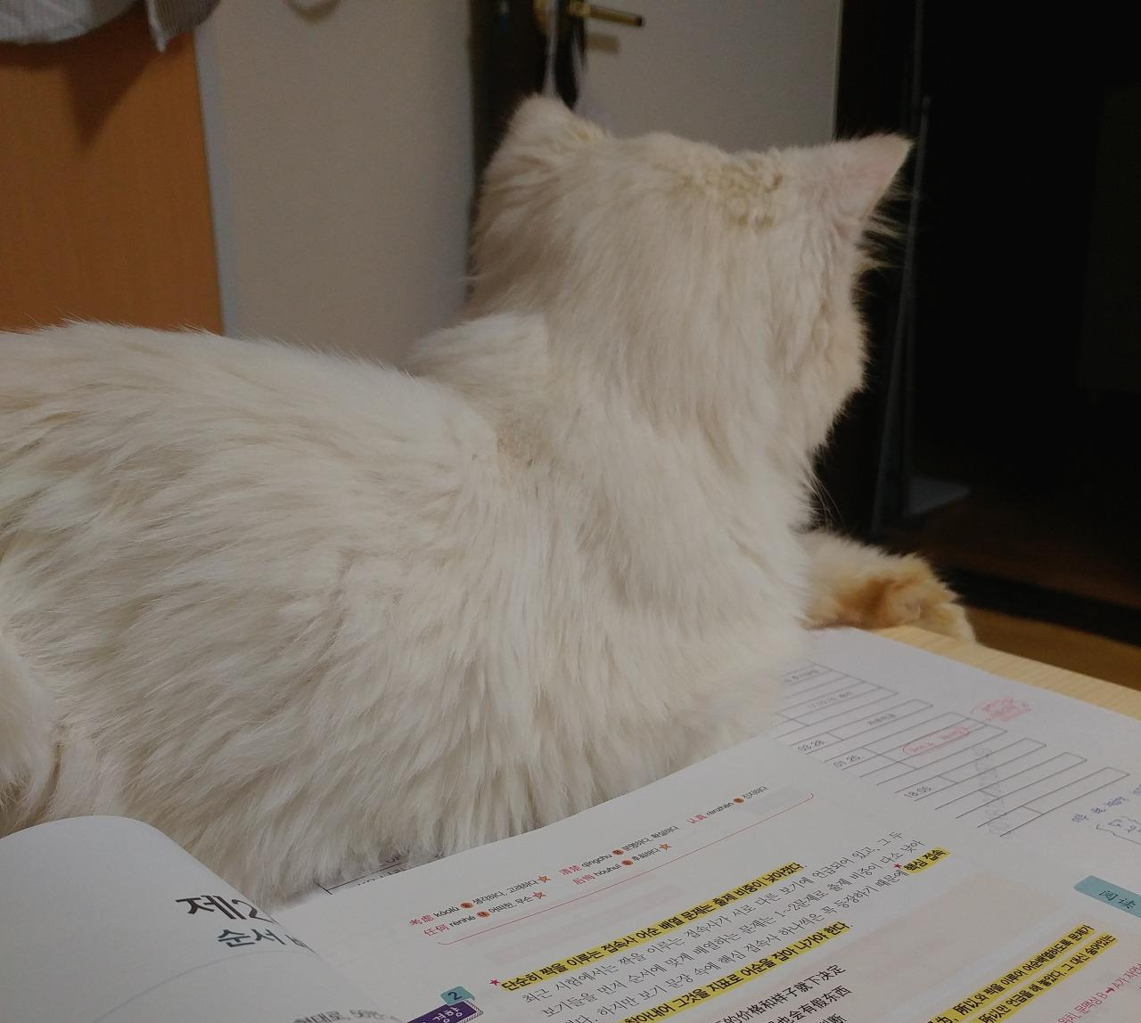 그래서 내가 조용히 책을 읽거나 공부하고 있으면 항상 옆에 다가와서 스-윽하고 냥통수를 들이민다. 마치 책만 보지 말고 자기도 좀 보라는 듯이. 끊임없이 관심을 요구하고, 늘 사랑받고 싶어 한다.