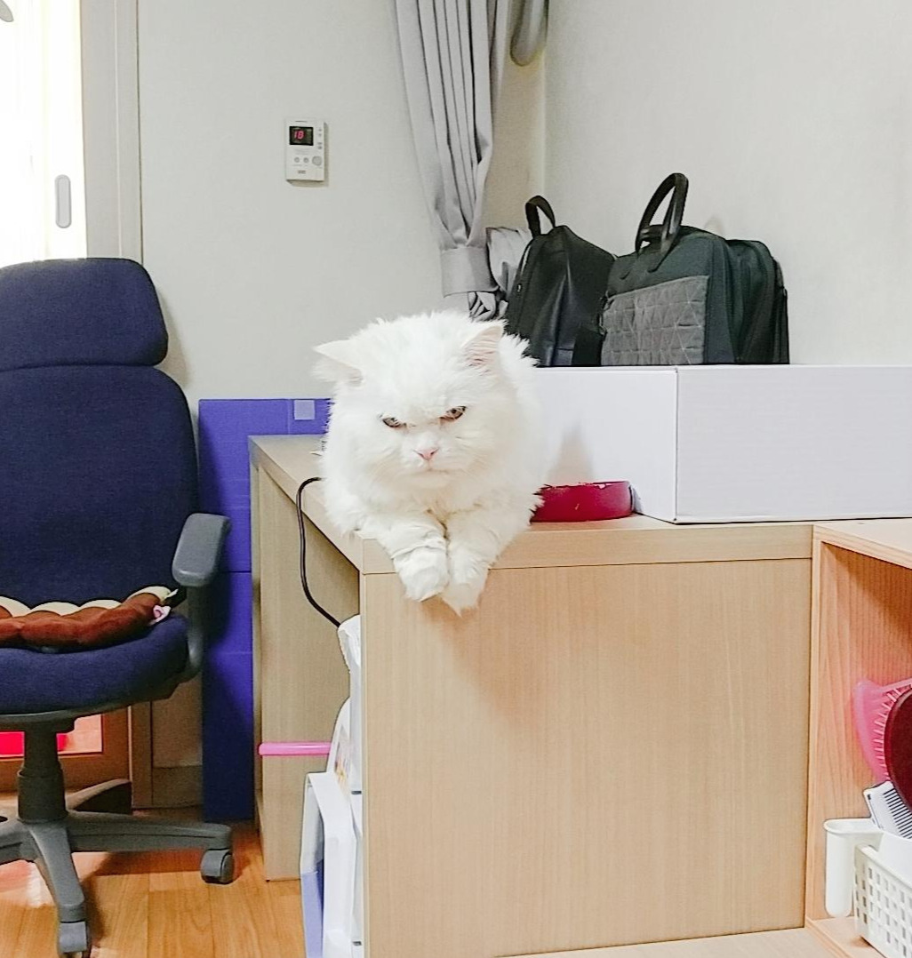 뒷다리에 힘이 없어서 주저앉은 채 변을 보고 나면 자존감 강한 흰둥이는 더욱 구석으로 숨었다. 흰둥이에게는 어쩌면 묘생 최고로 굴욕적이었던 시기가 아니었을까 싶다. 그 와중에 집사는 흰둥이가 이러다 무지개다리 건너는 건 아닌가 하고 주책바가지처럼 울면서 지켜보고 있었으니..
