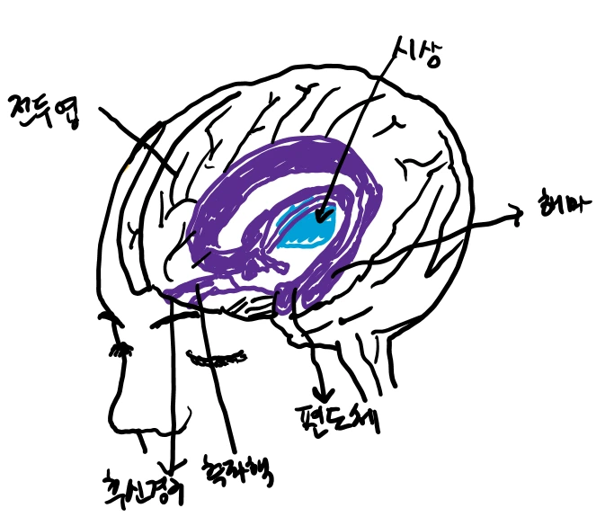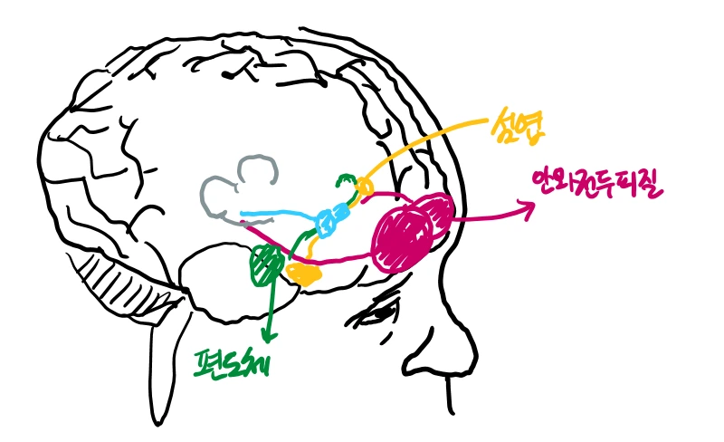 변연계에 포함된 편도체, 해마 그림 by 지음