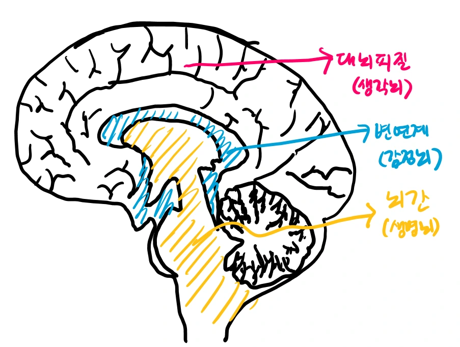 뇌의 3층 구조 (뇌간-변연계-신피질) 그림 by 지음