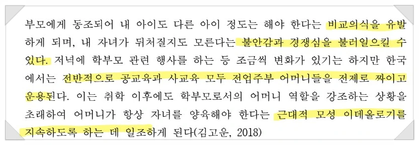 출처: (좌) 류은희. "초등학교 저학년 자녀를 둔 취업모의 양육스트레스 및 대처 경험 연구." 국내 박사학위논문