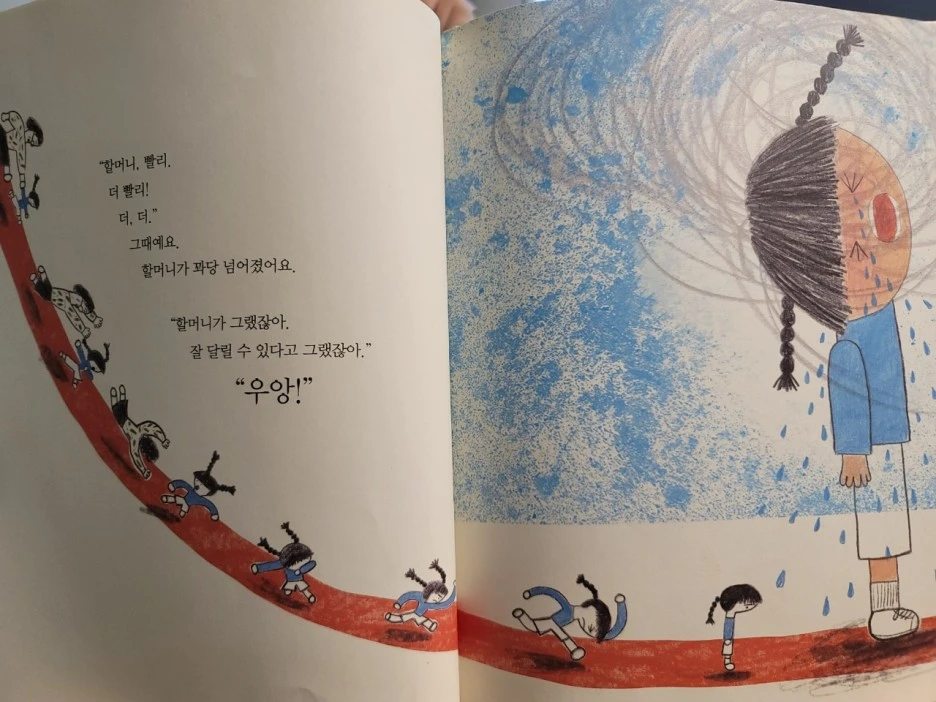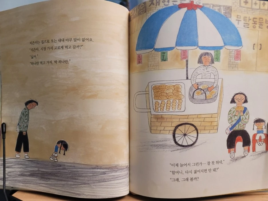이렇게 좋은 할머니 엄마가 있는데 손녀는 아직도 엄마가 고프다. 유치원 운동회에 엄마랑 갈 수 있을 줄 알았는데 회사 사정으로 할머니가 참여했다. 할머니는 자신이 엄마보다 운동을 잘했다며 큰 소리를 탕탕 쳤지만 달리기에서 넘어지고 만다. 손녀도 속상하고, 그 모습을 본 할머니 엄마는 더 속상하다. 그래도 할머니 엄마는 손녀 달래기의 고수. 시장에서 파는 고로케를 먹으며 둘은 속상한 마음을 달랜다. 둘이 고로케 먹는 모습이 어찌나 귀엽던지.