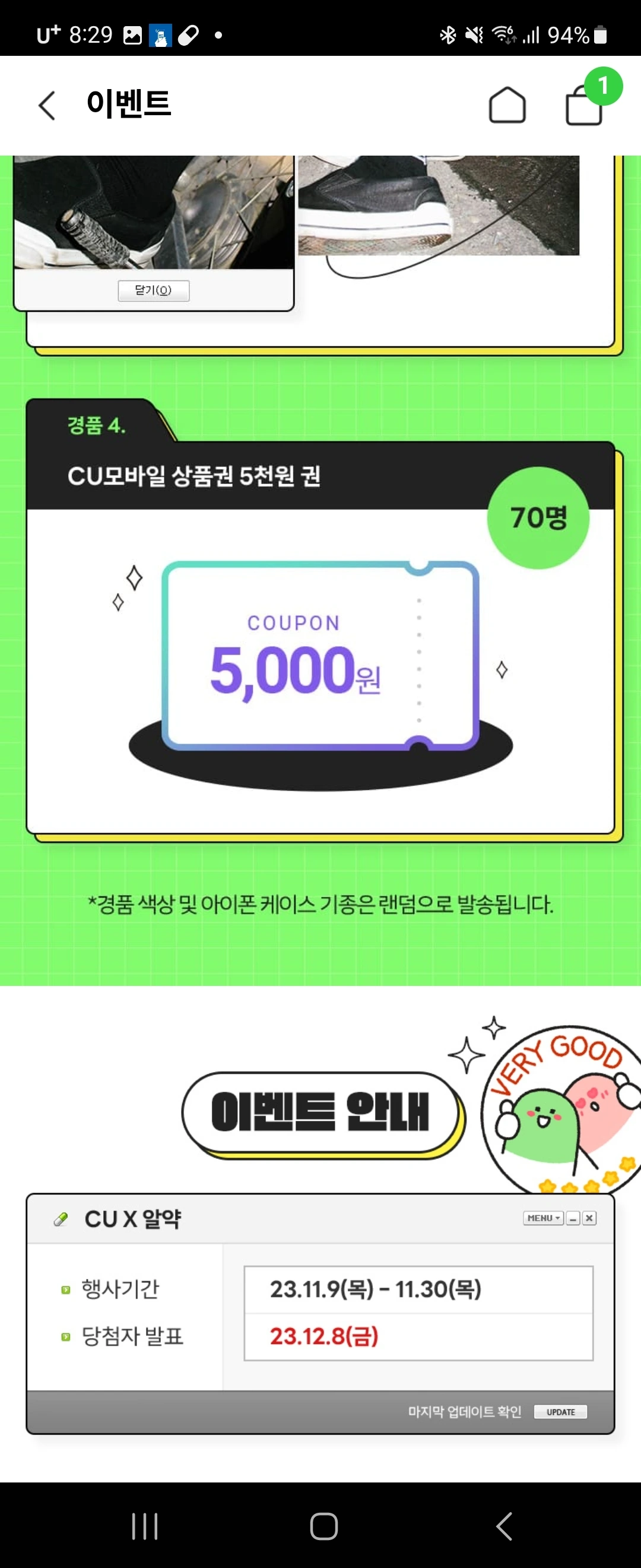 CU에서 한정판 발란사 경품에서 준대요