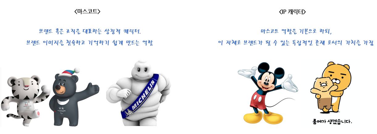 우선 마스코트와 IP 캐릭터의 차이점을 설명하고 싶다.