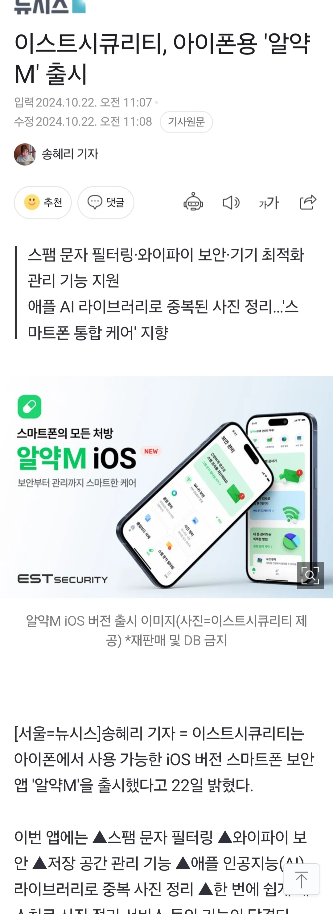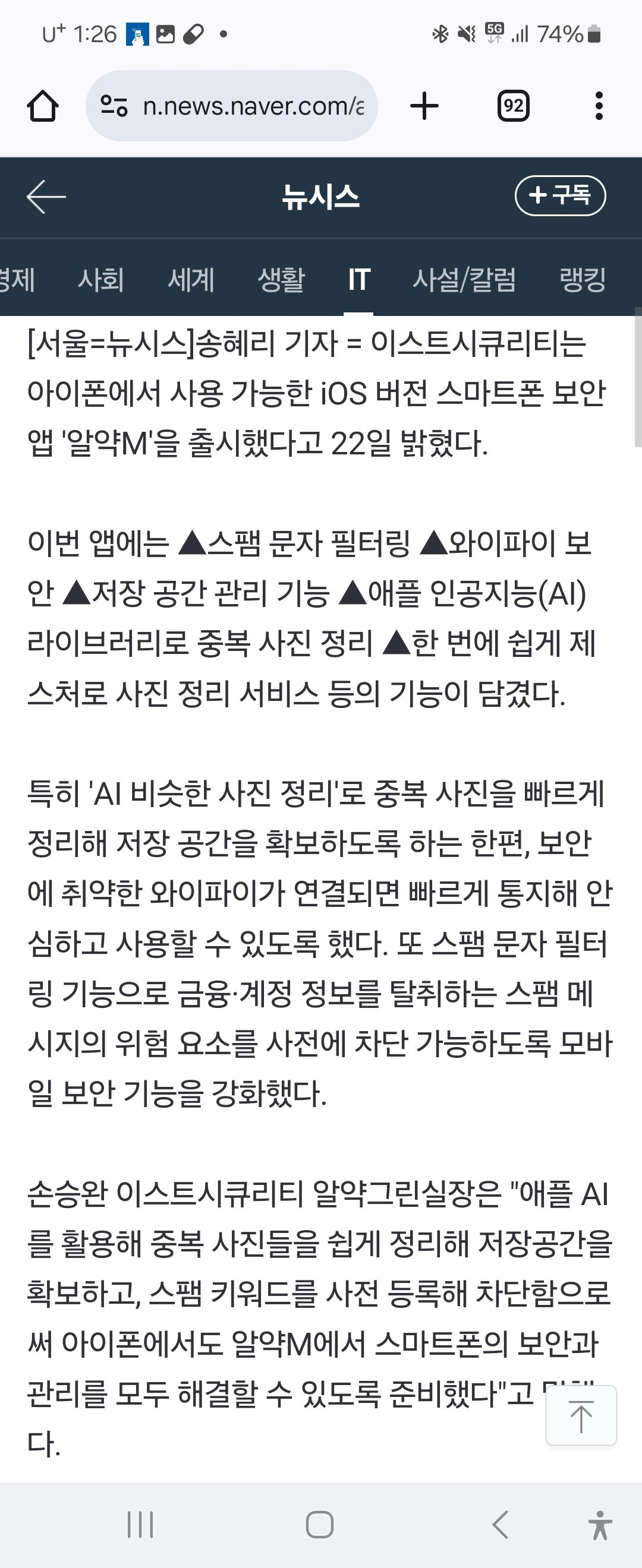 스팸문자 필터링, Apple AI 유사한 사진정리 기능 등