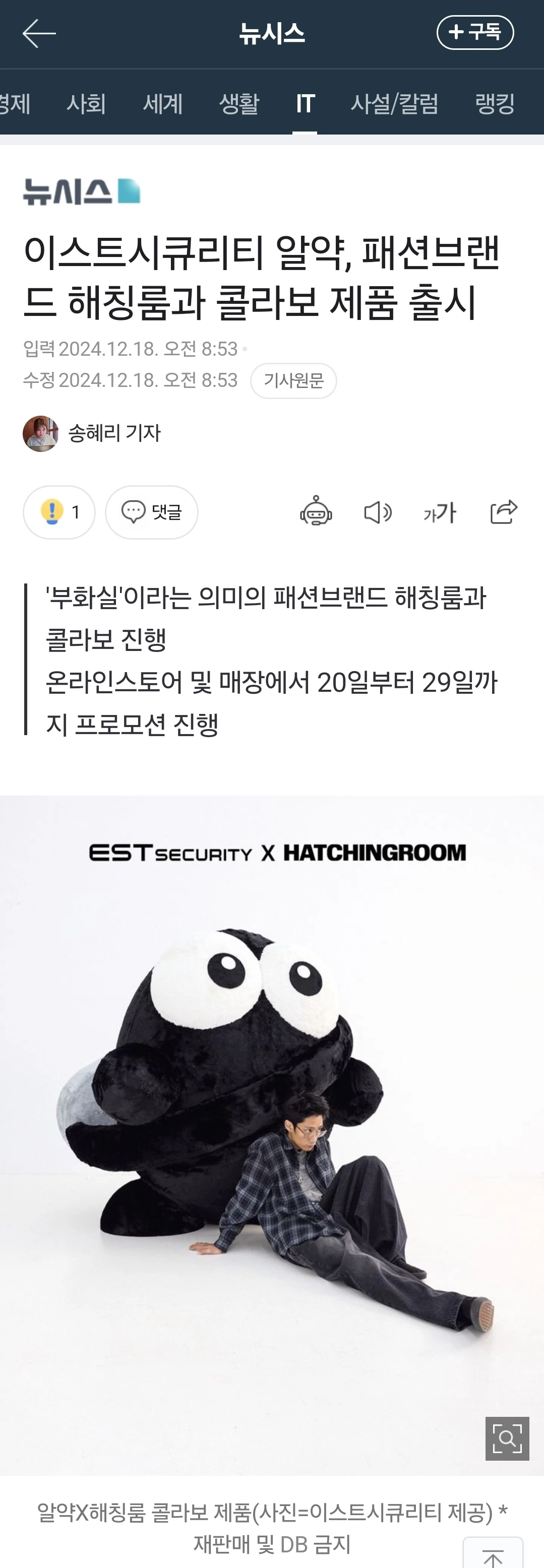 이스트시큐리티는 알약과 패션 브랜드 해칭룸이 협업해 패션 아이템 5종을 출시한다고 18일 밝혔다. 이번 협업은 일상에서 영감을 받아 기존의 의류를 재해석하는 해칭룸의 철학과, 바이러스를
