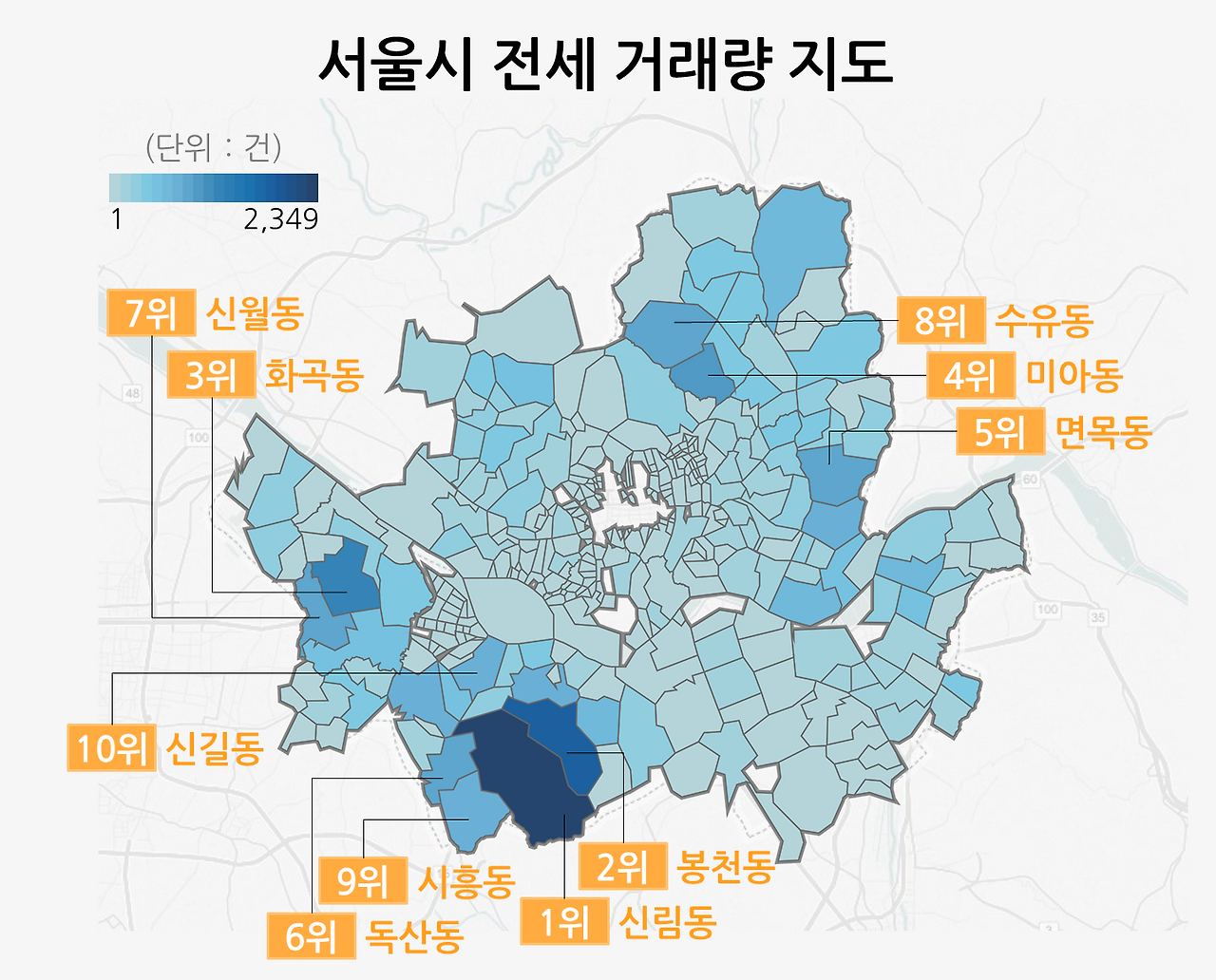 청년주거 문제을 위한 활동을 펼치는 민달팽이유니온이 서울지역의 전세 거래 데이터를 분석한 결과를 공개했습니다. 동별 월세 거래 데이터 분석에 이은 것으로 청년전세임대를 이용하려는 청년층에 도움이 될 것으로 보입니다.