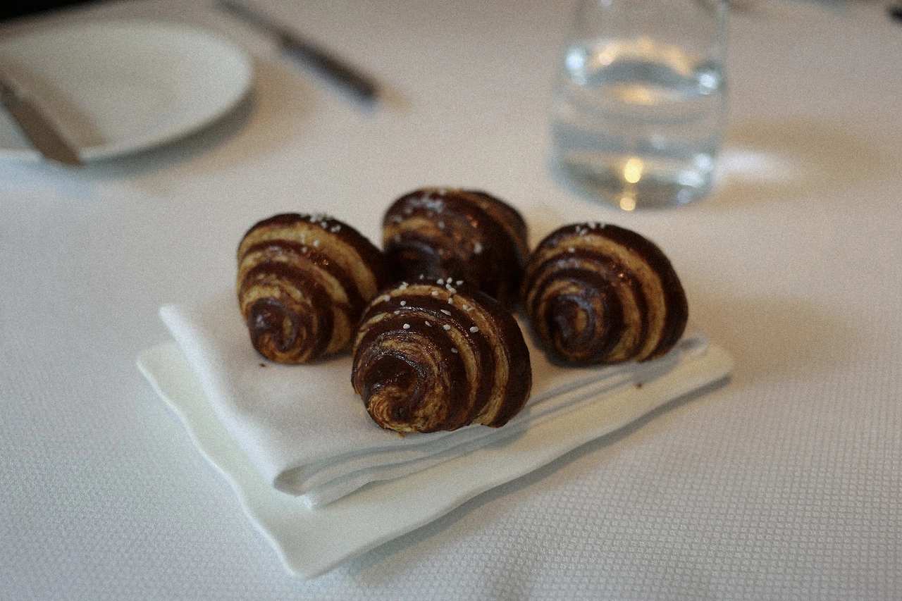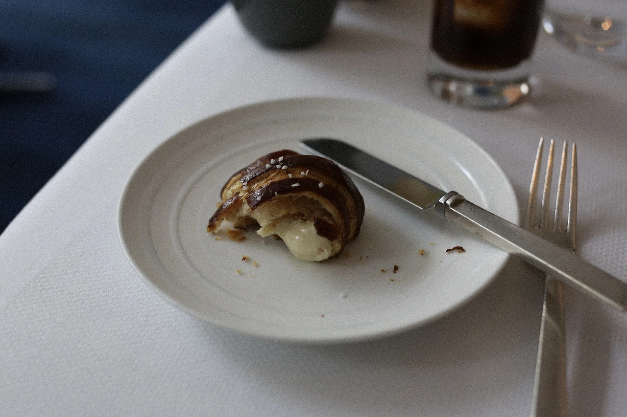 그리고 프레즐 크루아상이 나오는데 이 식당의 페이스트리 셰프는 김지호 씨라고 한다 (괜히 반가운 한국 이름). 크루아상 식감인데 반죽이 프레즐의 재료를 쓴 것 같았고 겨자를 베이스로 한 소스가 들어있다. 매우 뉴욕스럽고 재미있는 음식이었다.