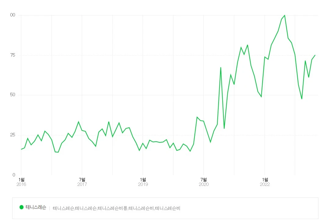 테니스 레슨에 대한 키워드량이 증가하는 것만 봐도 얼마나 관심이 높아졌는지 알 수 있죠!