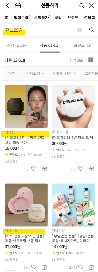 탬버린즈는 카카오톡 선물하기 인기 핸드크림 상품으로 많은 분들이 알고 계실 텐데요, 작년엔 제니 향수로 유명해져 향수까지 인기를 얻고 있어요 :)