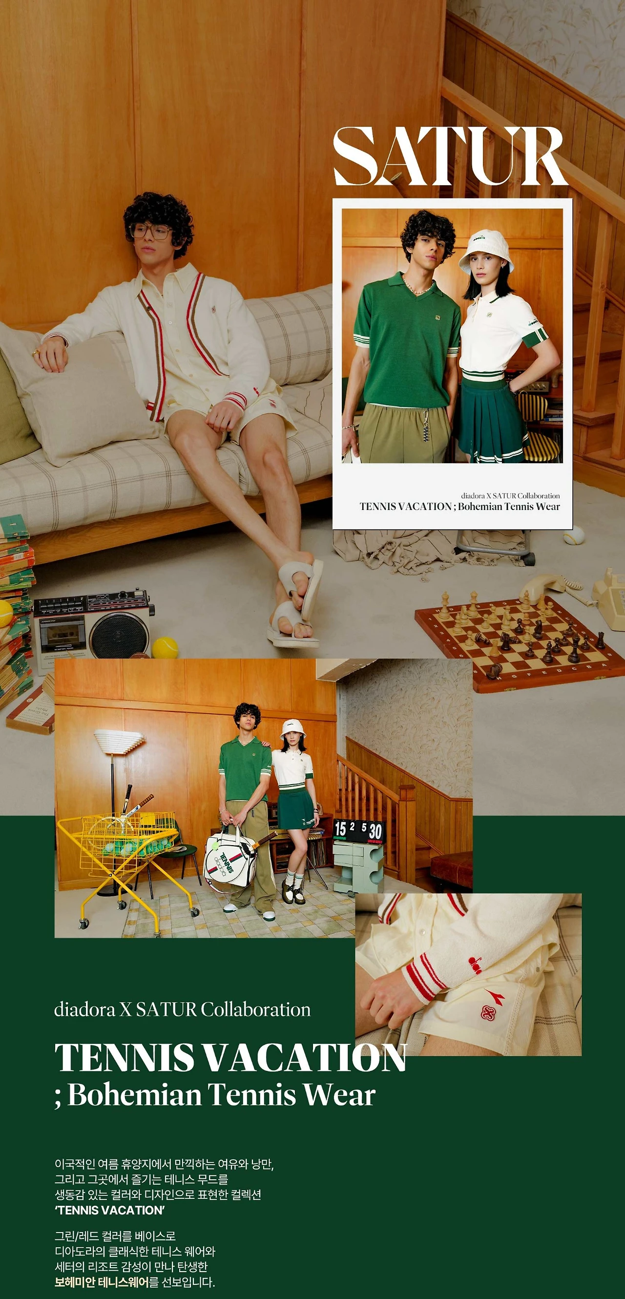 최근 세터가 디아도라와 협업해 만든 테니스웨어가 가장 눈에 띄어요. 2020년에 탄생한 세터가 1940년대에 탄생한 이탈리아의 전통적인 스포츠 라이프스타일 브랜드 디아도라와 협업을 하다니! 탄생 시점은 달라도, 리조트룩을 추구하는 세터와 스포츠 라이프스타일 브랜드 디아도라의 만남은 너무 잘 어울렸어요. 세터의 리조트감성과 디아도라의 클래식 테니스웨어가 만나서 보헤미안 테니스룩을 완성시켰어요.