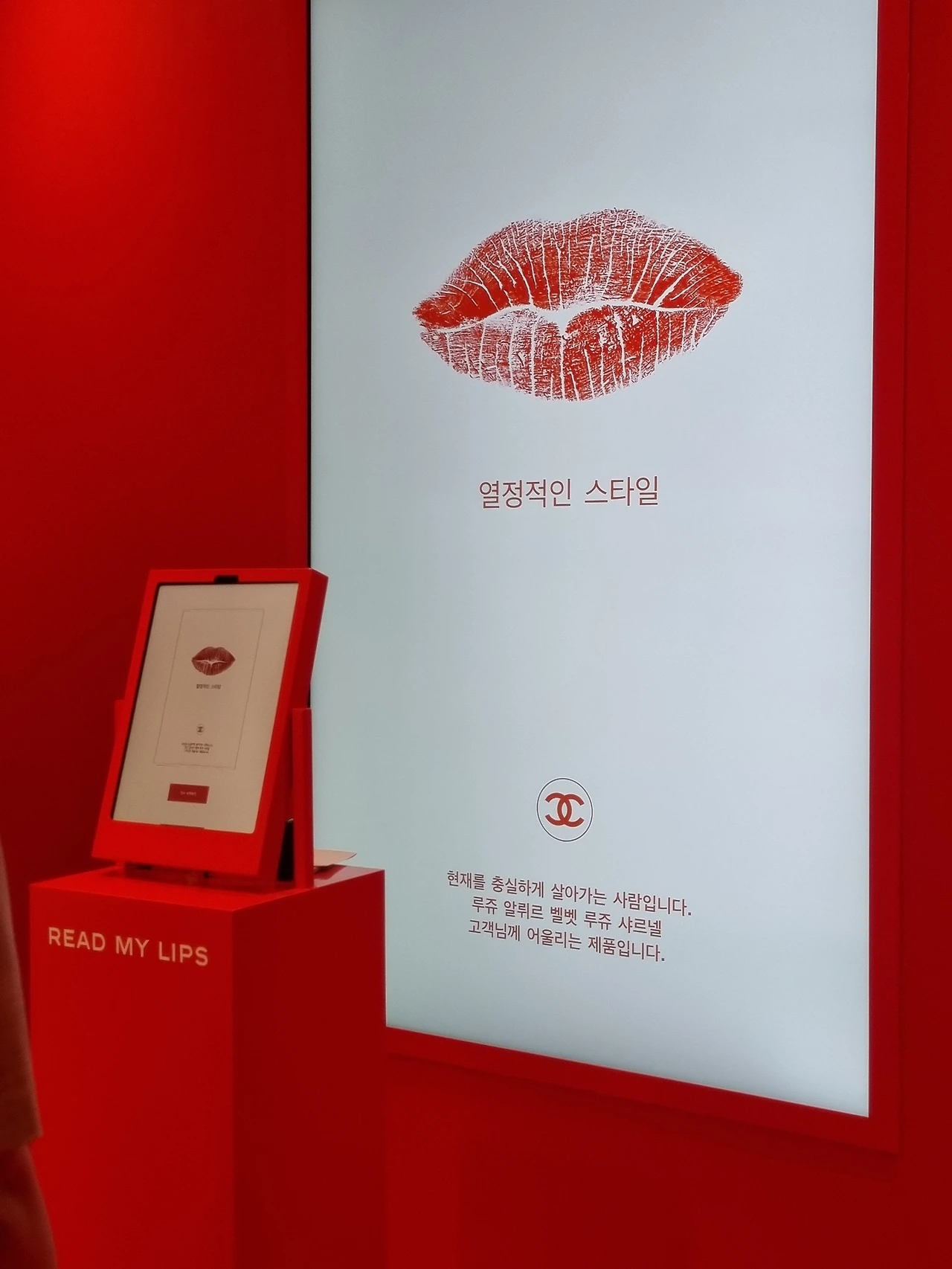아무래도 디지털로 입술을 스캔한 후 본인의 입술에 맞는 컬러를 추천해 주는 부분이 가장 인상적이었어요. 사실 도쿄 시세이도에서 피부톤을 스캔한 후 얼굴색과 찰떡인 파운데이션을 추천받아본 경험이 있어서 엄청 놀랍진 않았지만요. (추가로 그 샤넬 팝업에서 추천해 준 색상이 그렇게.. 정확도가 맞진 않더라고요 ^^;)