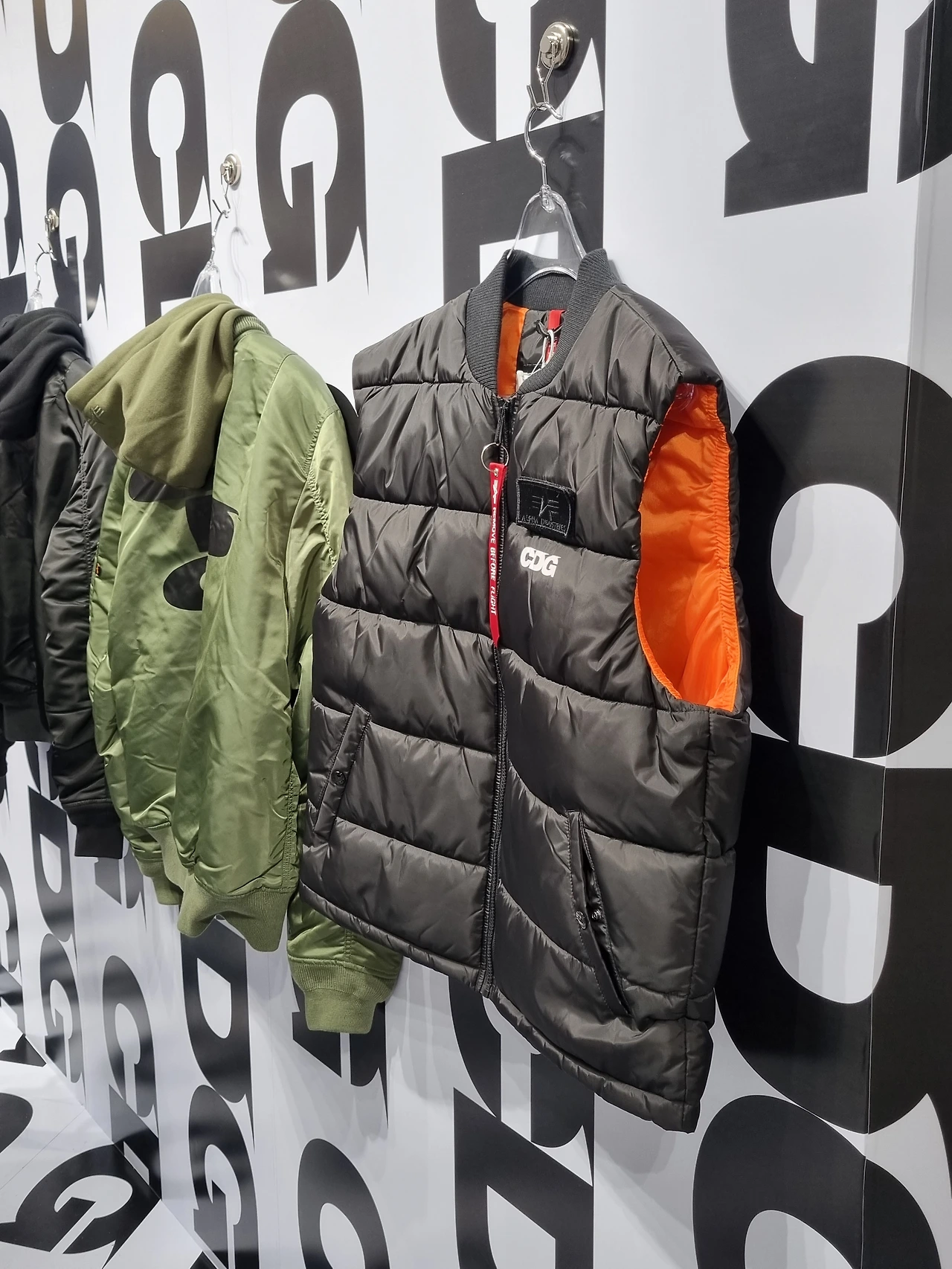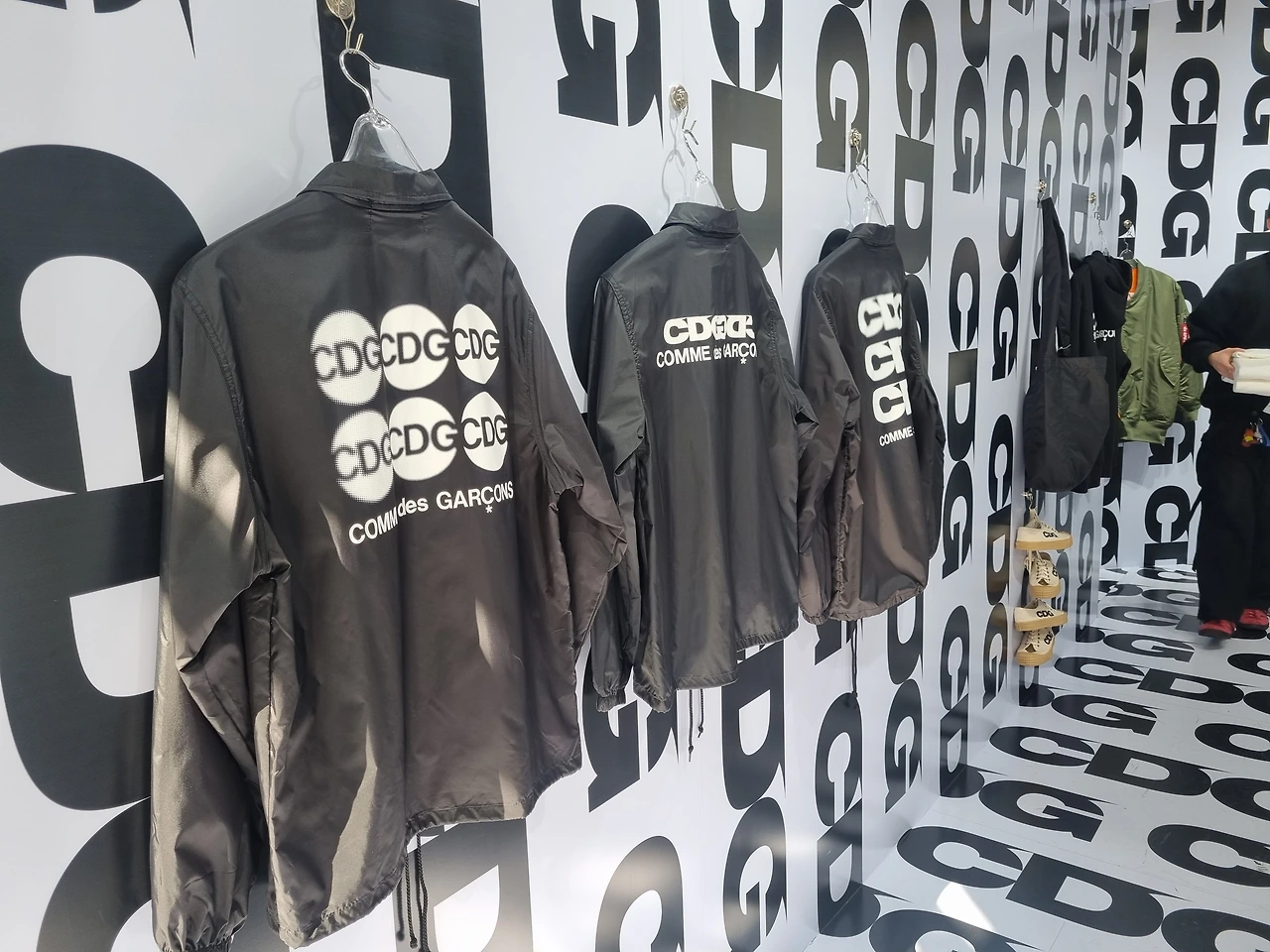 해당 매장에선 CDG의 대표 상품뿐만 아니라, 로고 플레이가 반영된 후디 집업과 오는 10월부터 판매 예정인 ‘알파 인더스트리’와의 협업 패딩 베스트를 만나볼 수 있습니다. 특히 일부 협업 제품은 한국에서만 만나볼 수 있다고 하니, 요런 제품은 미리 확인해 보고 가는 것도 좋을 듯합니다.