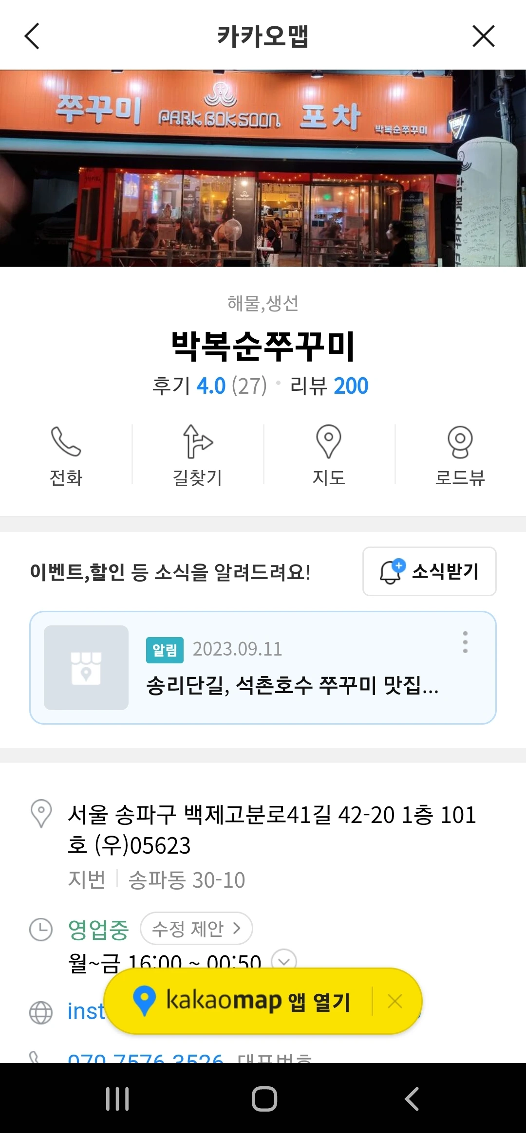 매장 정보를 클릭했더니 카카오맵으로 이동하더라고요. (베타서비스라고 해도 너무 지저분해 보이긴 합니다...)