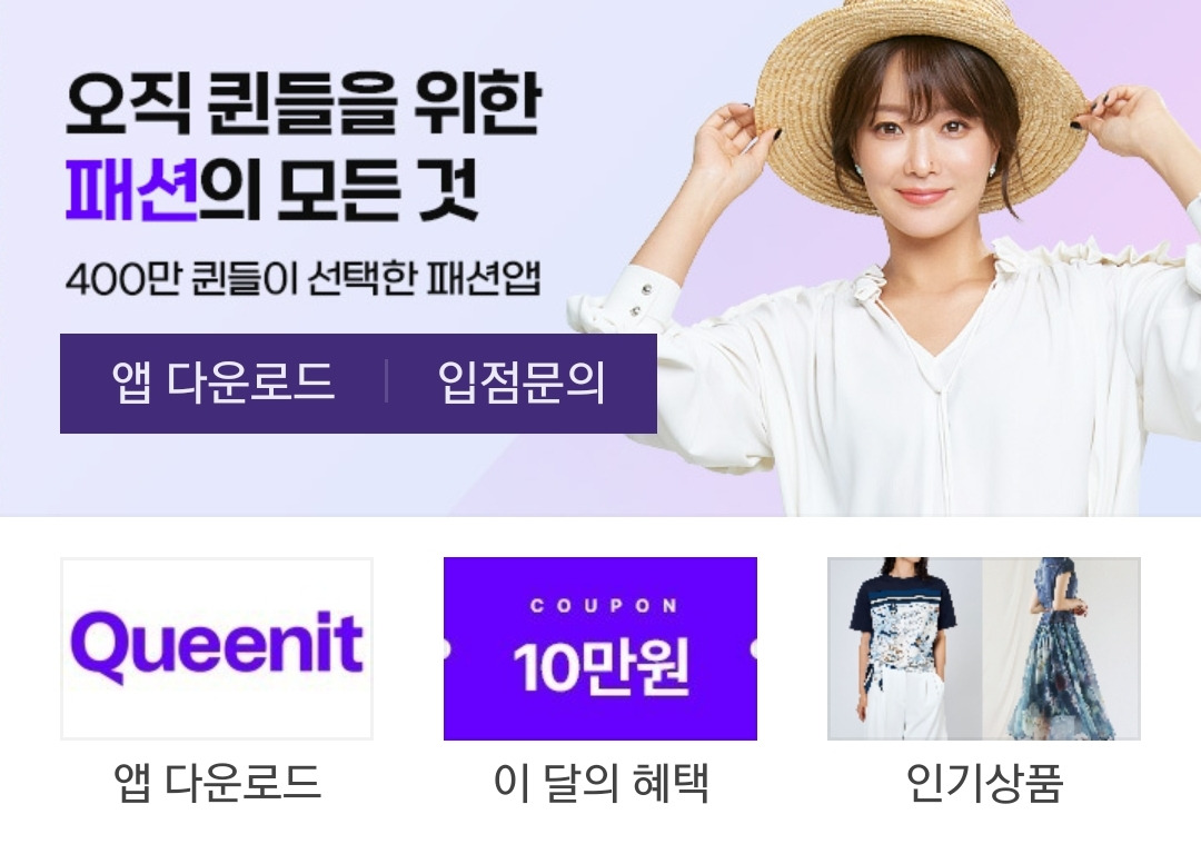 그중 가장 대표적인 쇼핑몰은 퀸잇입니다. 퀸잇은 40, 50대의 여성을 타깃으로 하는 패션몰입니다. 다른 패션몰과 달리, 4050 여성들에게 최적화된 사이즈의 퀄리티 높은 브랜드와 상품들을 모아서 보여줍니다. 이 외에 3초 회원가입, 사이즈 맞춤 추천 기능 등 4050 고객들에게 편리한 쇼핑 기능을 제공하려고 합니다.