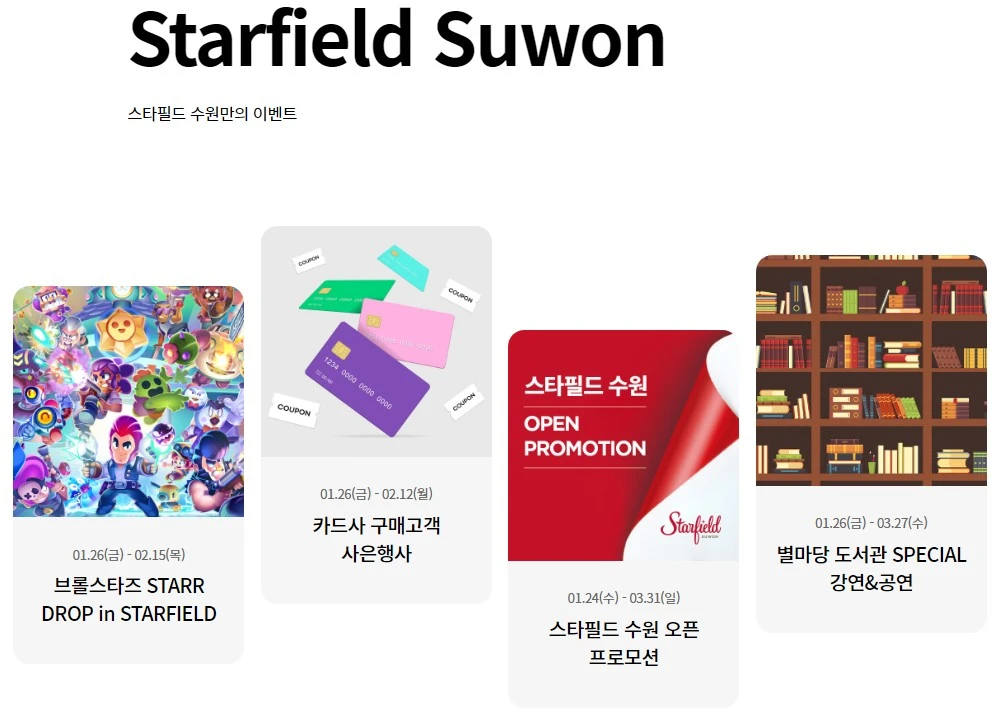 스타필드 코엑스몰의 명소로 꼽히는 '별마당 도서관'도 서울 외 지역으론 최초로 세워져 스타필드가 수원점에 얼마나 신경을 썼는 지를 알 수 있게 합니다.