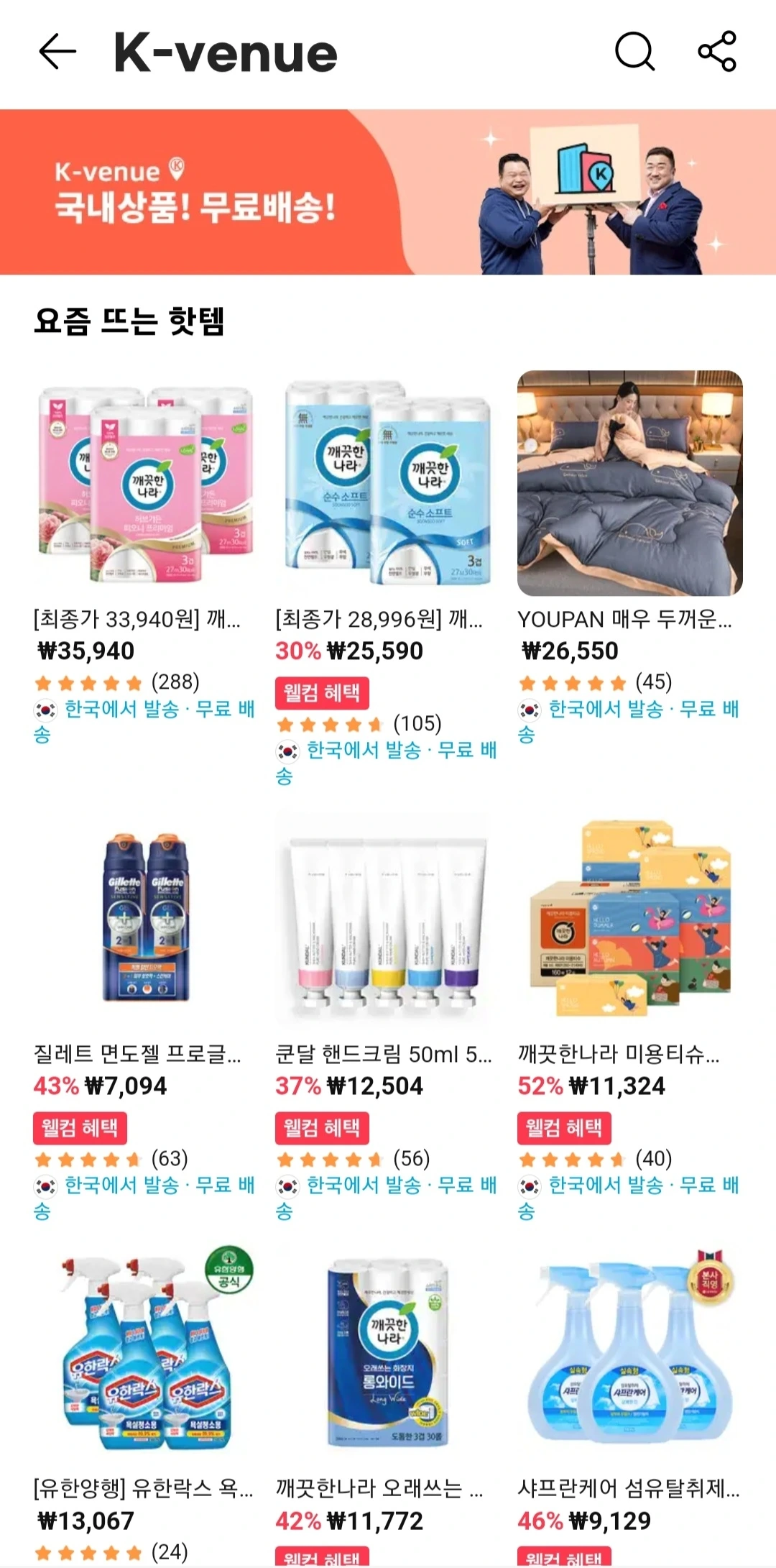 K베뉴는 국내에서 판매 중인 상품만을 모아놓은 전문관으로, 중국 직구 제품과 달리 국내에서 상품을 직접 발송하기 때문에 이르면 익일 배송, 늦어도 3일 내 상품을 받아볼 수 있고 배송료 또한 무료입니다. K-베뉴 확대를 위해 3월 말까지 수수료 무료 정책을 시행 중입니다.