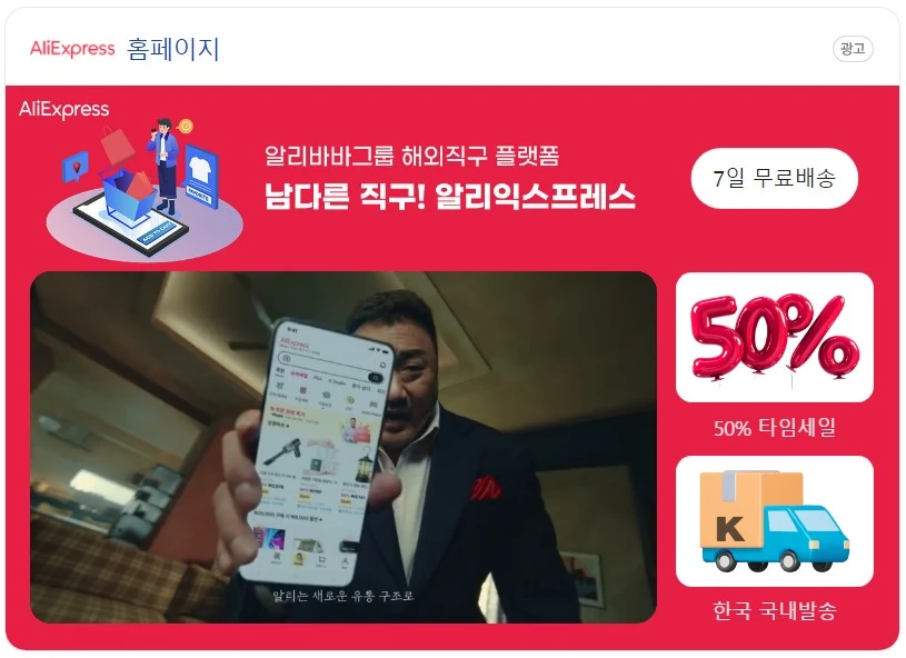 알리익스프레스의 한국 대표가 작년 3월 한국에 1,000억 원을 투자할 것이라고 밝혔고, 마동석이라는 모델도 브랜드이미지와 찰떡이라 시너지를 내고 있는 것 같습니다.