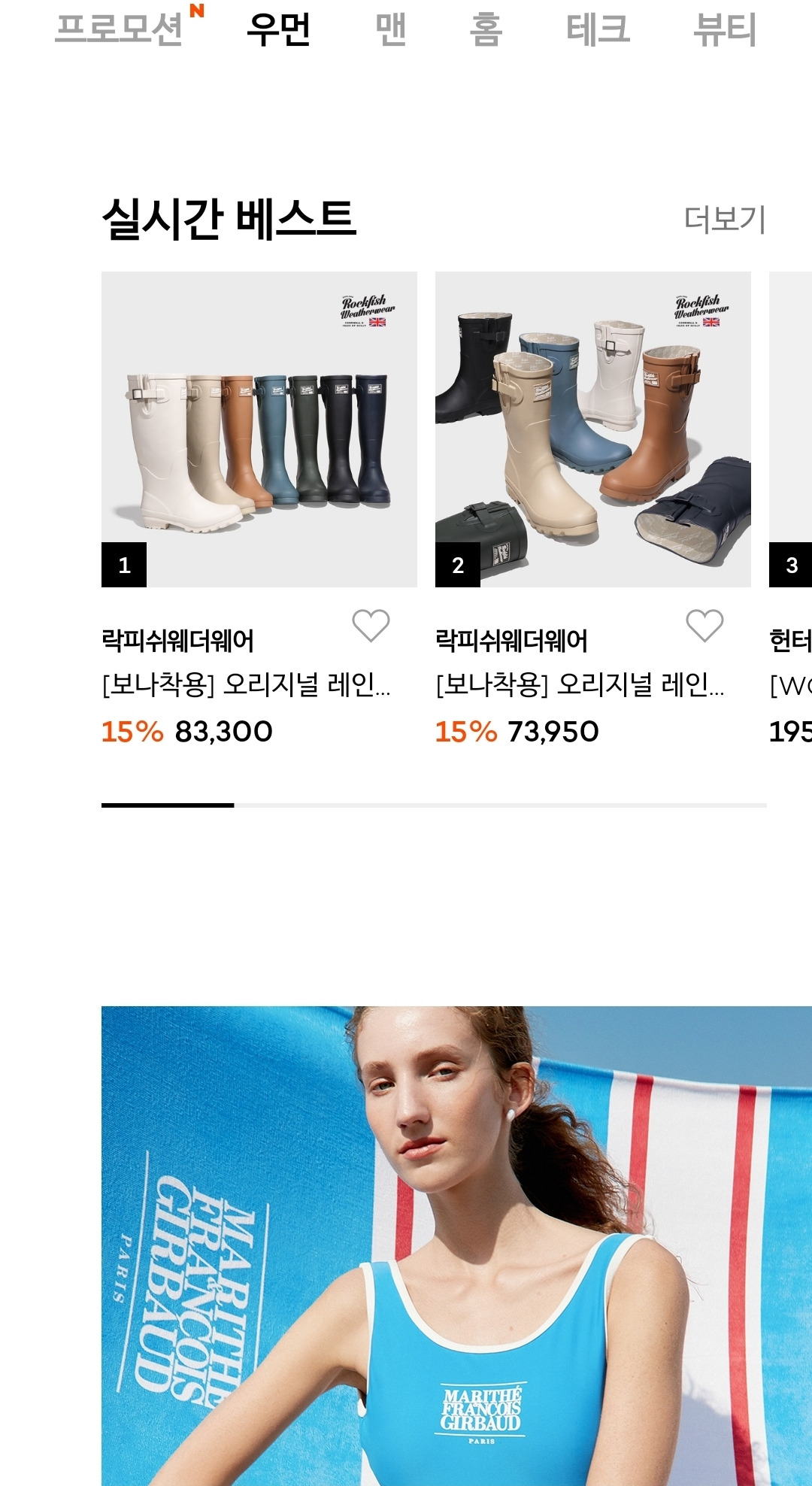 그리고 화면을 한참 내리다 보면 실시간 베스트라는 코너를 만나볼 수 있습니다. 크게 눈에 띄지는 않아요.