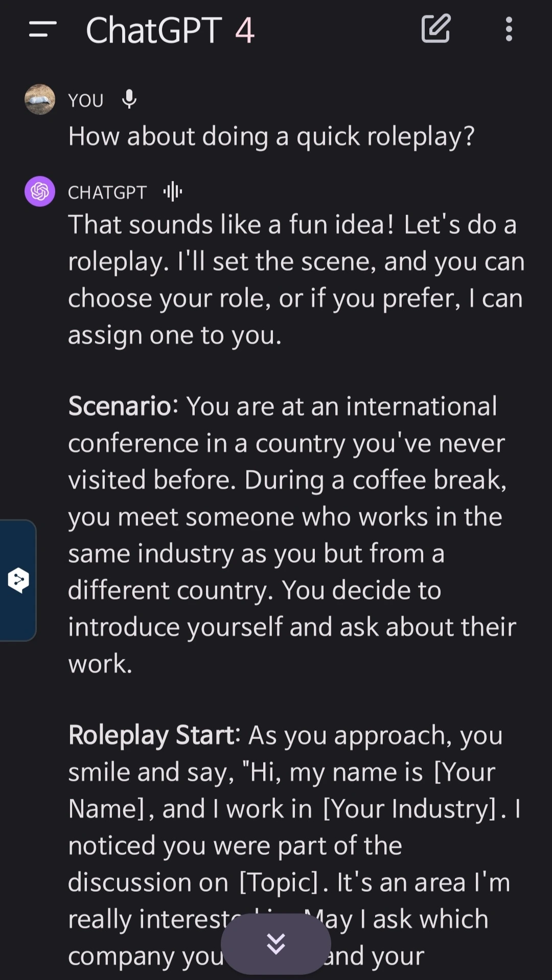 - 처음에는 따로 역할을 주지 않았는데 어떻게 알고 딱 제가 필요한 시추에이션의 롤플레이를 주는데요 가이드/피드백을 주기 때문에 유용하게 활용할 수 있습니다.