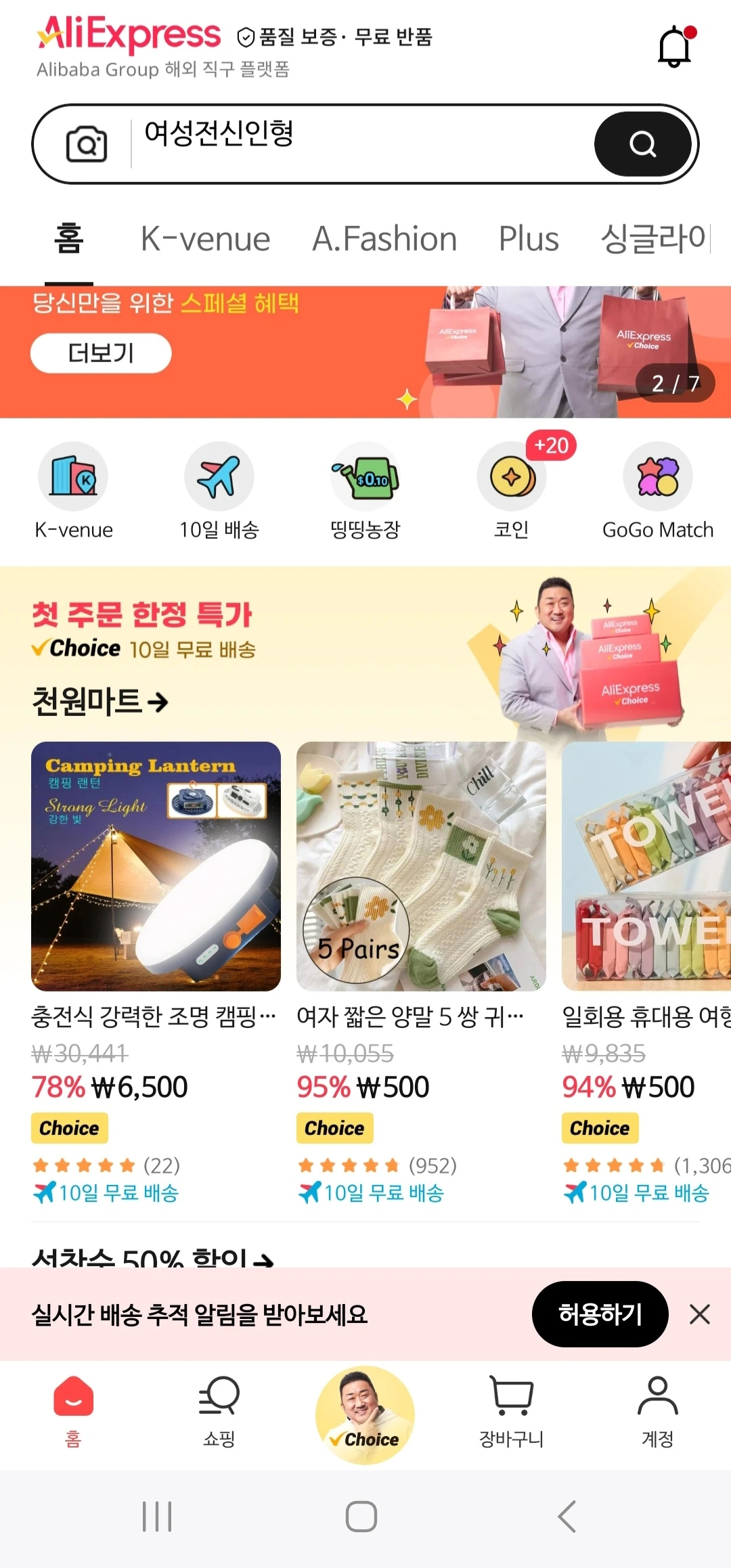 또한 알리는, 지난해 말부터 국내 식품업체들과 K-베뉴 입점 논의를 진행했다고 합니다. K베뉴는 작년 10월에 론칭한 국내에서 판매 중인 상품만을 모아놓은 전문관인데요, 국내에서 상품을 직접 발송하기 때문에 이르면 익일 배송, 늦어도 3일 내 상품을 받아볼 수 있고 배송료 또한 무료입니다. K-베뉴 확대를 위해 3월 말까지 수수료 무료 정책을 시행 중이기도 하죠. K-베뉴를 확대하며 식품까지 아우르는 모양입니다. 알리의 모바일 첫 화면에서 K-베뉴를 첫 탭에 노출하는 것을 통해서도 중요도 우선순위에 있음을 알 수 있어요.