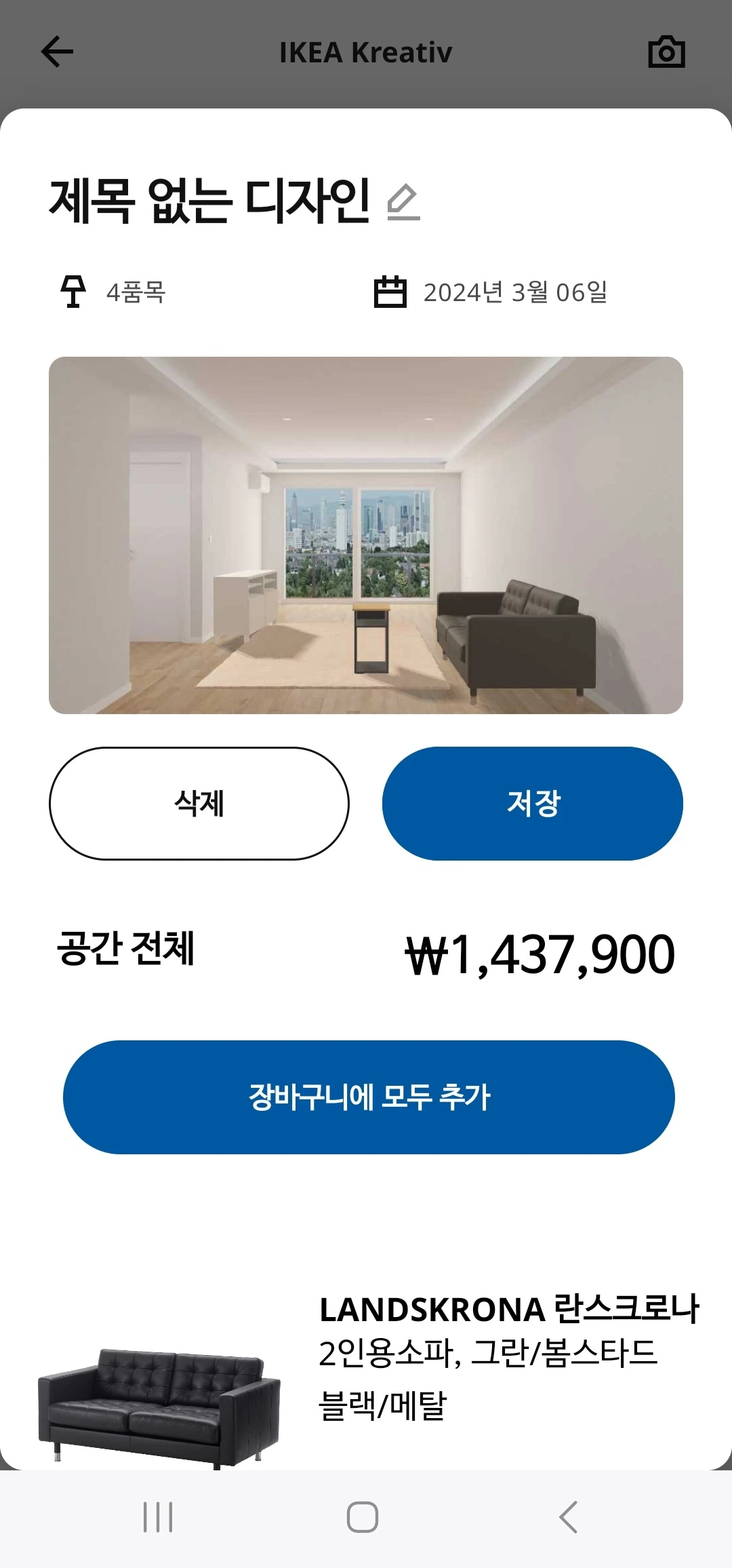 이케아 어플안에서 사용할 수 있어요. 직접 사용해보니 마치 게임을 하는 듯 즐거웠습니다. 가구 배치를 자유롭게 할 수 있었고, 미리 디자인된 공간에서 영감을 얻을 수도 있어요. 배치를 한 이후 해당 상품을 장바구니에 담을 수 있도록 설계 되어 있었어요.